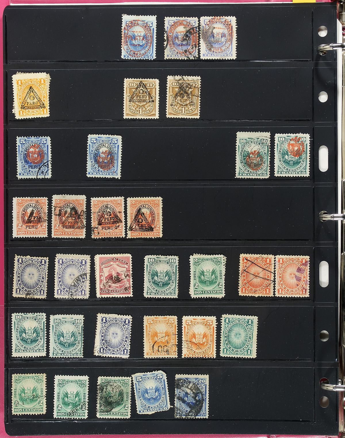 Collection / Accumulation of primarily used Peru, 1857-1975, containing roughly 750 in 15 double sided Vario stockpages. A nice starter group from this underappreciated collecting area, which includes a selection of "back of the book" issues. Owner's older Scott catalogue value for the lot totals US$960.00 ($1296.00 CDN). A few small faults noted with a few stamps, and a bit of duplication with a few issues. Estimate =