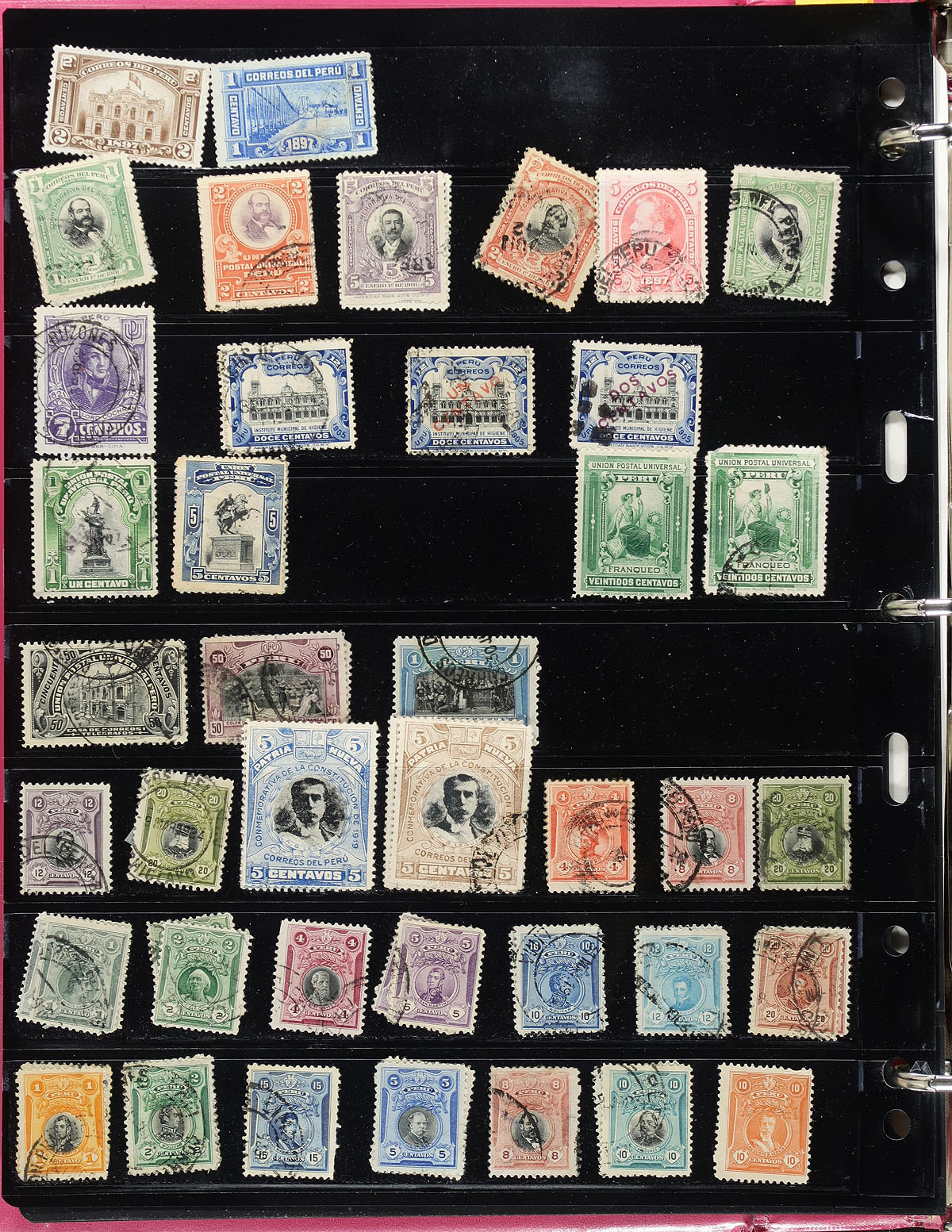 Collection / Accumulation of primarily used Peru, 1857-1975, containing roughly 750 in 15 double sided Vario stockpages. A nice starter group from this underappreciated collecting area, which includes a selection of "back of the book" issues. Owner's older Scott catalogue value for the lot totals US$960.00 ($1296.00 CDN). A few small faults noted with a few stamps, and a bit of duplication with a few issues. Estimate =