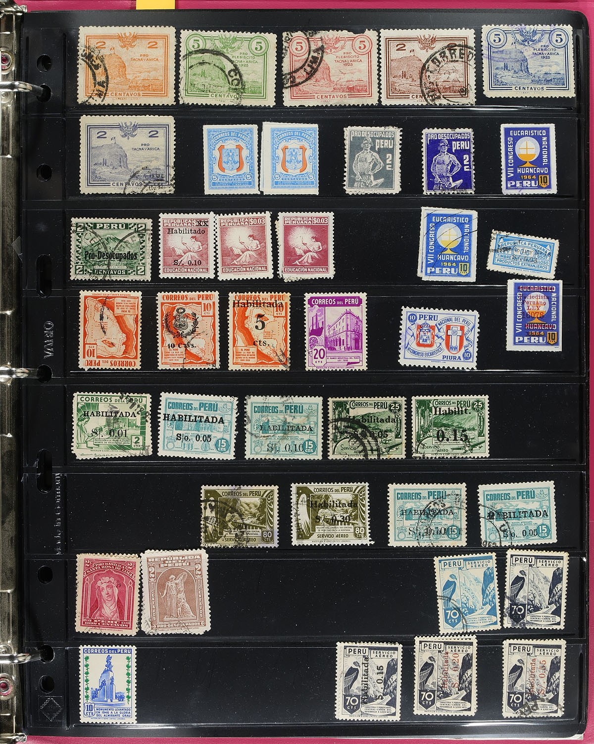 Collection / Accumulation of primarily used Peru, 1857-1975, containing roughly 750 in 15 double sided Vario stockpages. A nice starter group from this underappreciated collecting area, which includes a selection of "back of the book" issues. Owner's older Scott catalogue value for the lot totals US$960.00 ($1296.00 CDN). A few small faults noted with a few stamps, and a bit of duplication with a few issues. Estimate =