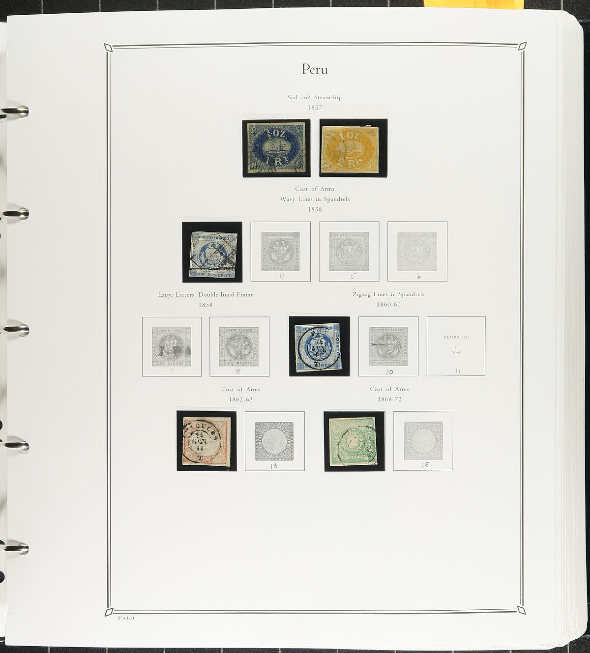 Lovely collection of primarily mint Peru, 1857-1978, containing just over 1,000 stamps, well organized on PALO album pages (in hingeless mounts), in a PALO binder. The collection generally ranges from Scott #3/673, along with a good run of airmail issues, along with postage dues, occupations, provisionals, and other "back of the book" issues. A spot check indicated singles, sets, and partial sets cataloguing $10 to $30 and up, including Scott #s 32-37 (used, $141 total), 234-241 (mh, $59), C81 souvenir sheet (lh, $55), just to name a few. Owner's older Scott catalogue value for the collection totals US$3,096.00 ($4179.60 CDN). A collection that begs to be continued. Estimate =