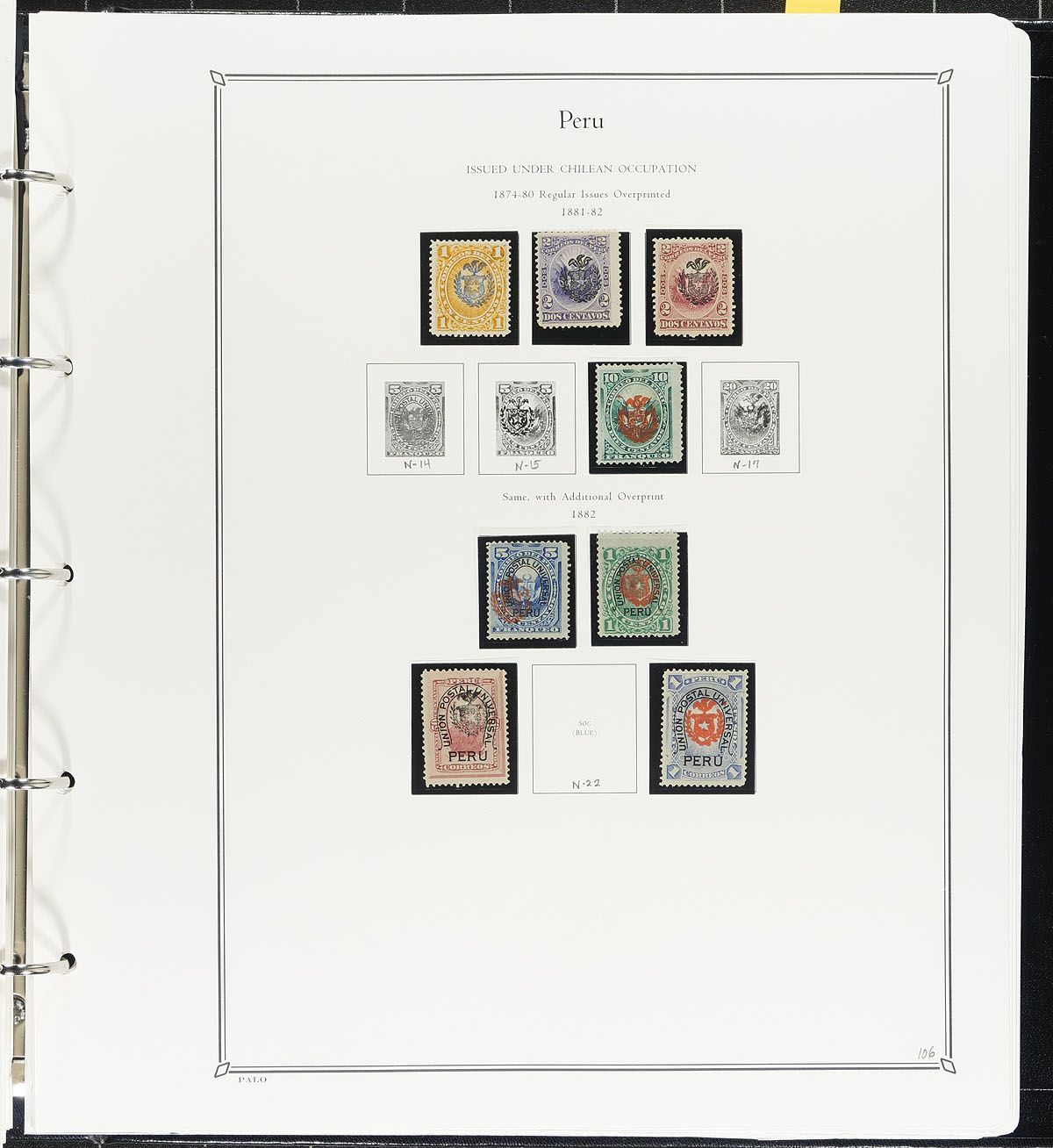 Lovely collection of primarily mint Peru, 1857-1978, containing just over 1,000 stamps, well organized on PALO album pages (in hingeless mounts), in a PALO binder. The collection generally ranges from Scott #3/673, along with a good run of airmail issues, along with postage dues, occupations, provisionals, and other "back of the book" issues. A spot check indicated singles, sets, and partial sets cataloguing $10 to $30 and up, including Scott #s 32-37 (used, $141 total), 234-241 (mh, $59), C81 souvenir sheet (lh, $55), just to name a few. Owner's older Scott catalogue value for the collection totals US$3,096.00 ($4179.60 CDN). A collection that begs to be continued. Estimate =