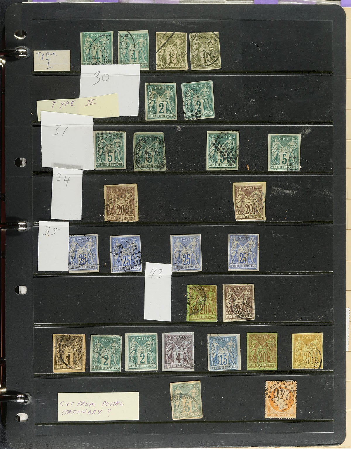 Collection of primarily used France and French Colonies, 1853-2011, containing a few thousand stamps on over 100 well organized homemade pages housed in two binders. The lot is essentially in two halves, the first being a used collection of France, ranging from Scott #14/4025, with better representation up to the 1970's, along with selections of precancels, perfins, and back of the book issues, and the second part having mint and used stamps from French colonies with better representation from Reunion, French Morocco, etc. A spot check indicated stamps and sets cataloguing in the $5 to $10 range. A nice lot from this popular collecting country. Estimate =