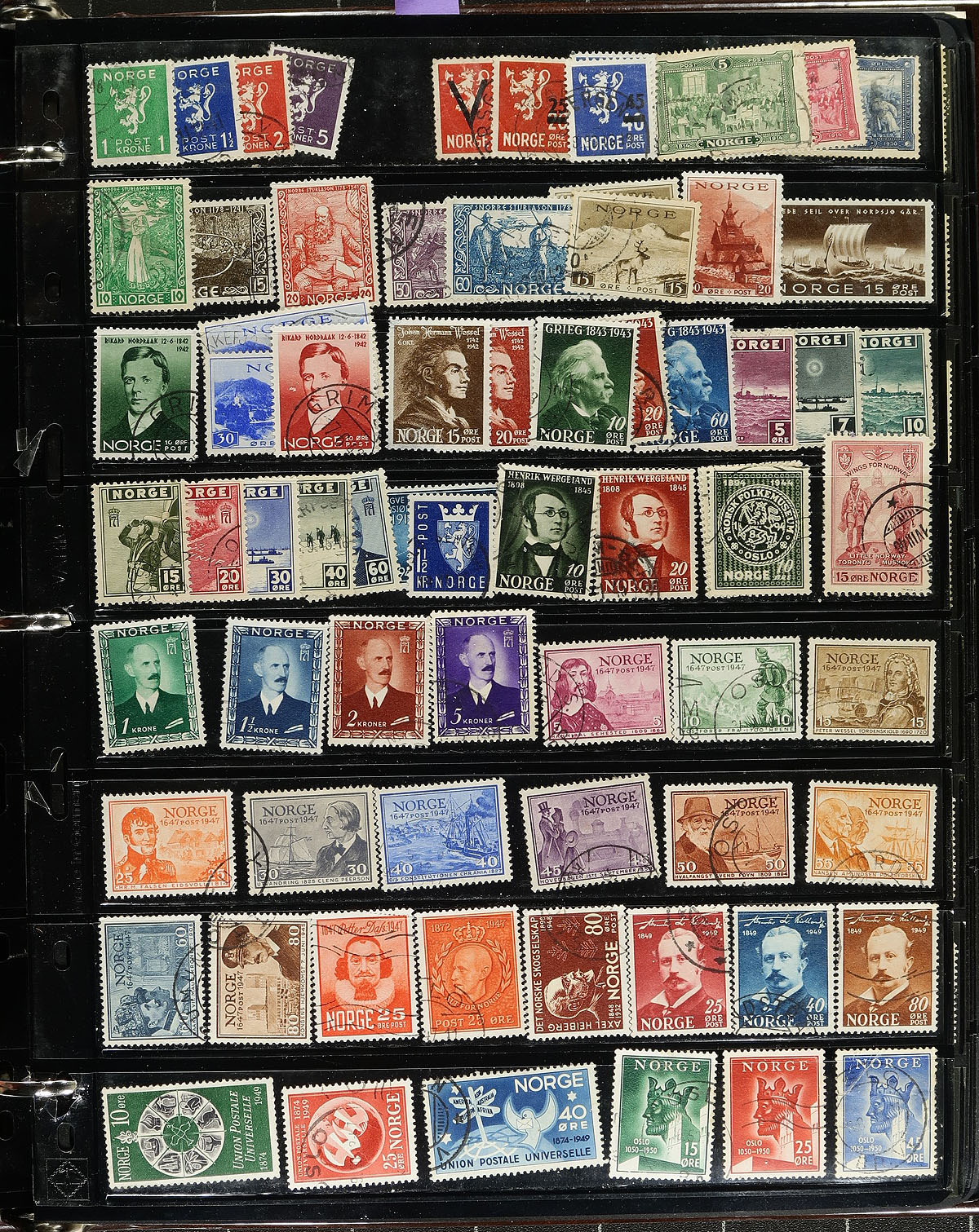 Scandinavia. Collection of primarily used Scandinavia, 1850's-2000's, containing a few thousand stamps on well over 100 well organized homemade and Vario stockpages in four binders. The lot essentially consists of starter collections with better representation from Finland and Norway, along with Sweden, Iceland, and Greenland. A spot check indicated some material cataloguing in the $5 to $15 range, along with some modern mint material, and used back of the book issues. Online photos show a small sampling. A nice lot for the Scandinavia or worldwide collector. Estimate =