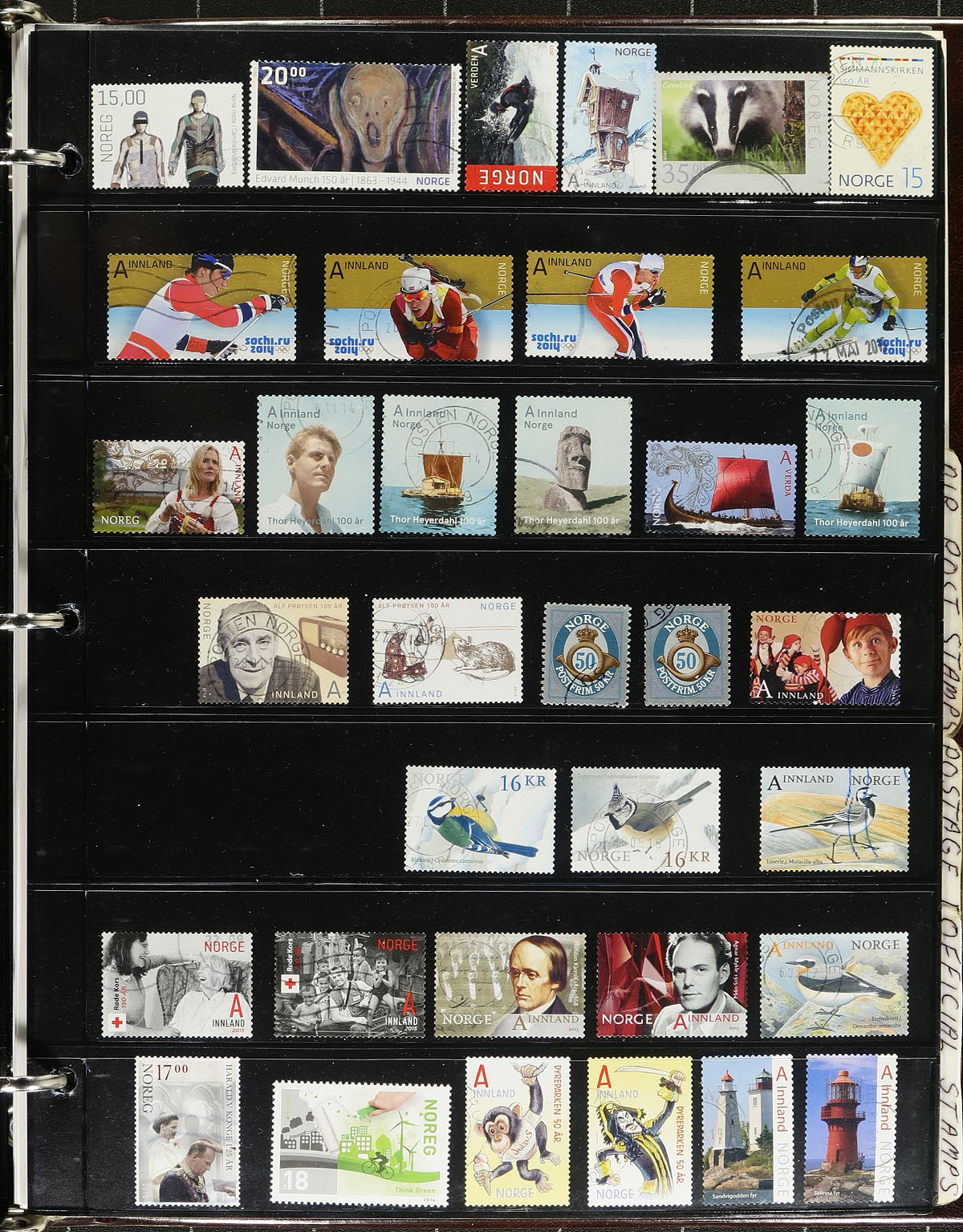 Scandinavia. Collection of primarily used Scandinavia, 1850's-2000's, containing a few thousand stamps on well over 100 well organized homemade and Vario stockpages in four binders. The lot essentially consists of starter collections with better representation from Finland and Norway, along with Sweden, Iceland, and Greenland. A spot check indicated some material cataloguing in the $5 to $15 range, along with some modern mint material, and used back of the book issues. Online photos show a small sampling. A nice lot for the Scandinavia or worldwide collector. Estimate =