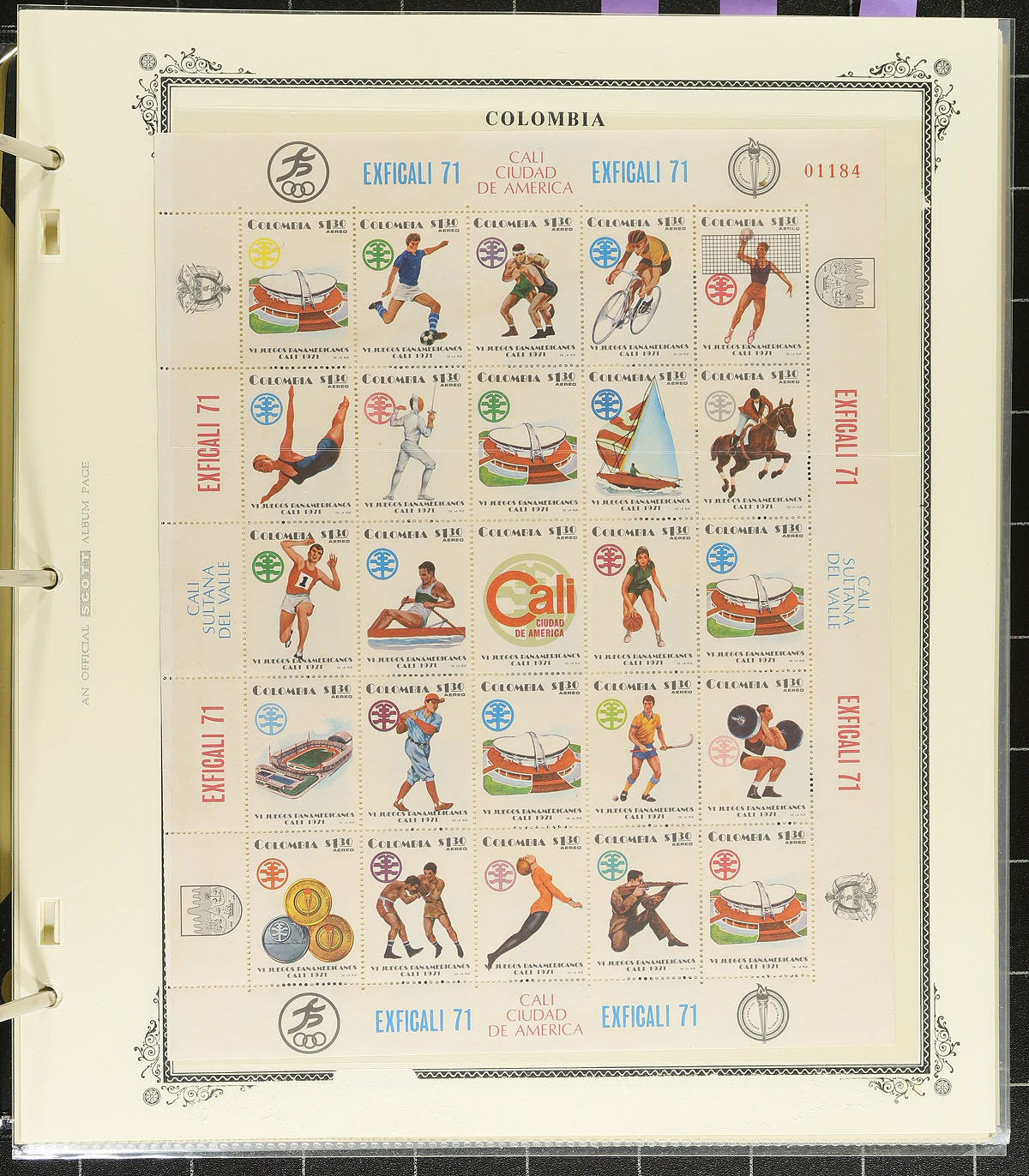 Nice collection of primarily mint Colombia, 1865-1977, containing roughly 1,225 stamps, well organized in several hingeless Scott Specialty album pages housed in a binder. The strength of the collection ranges from the 1880's up to the 1970's, and includes "back of the book" issues noting airmails, Colombia States, and more. A spot check indicated some stamps and sets ranging from $5 to $15 each. Owner's older Scott catalogue value for the collection totals US$1,331.00 ($1796.85 CDN). A nice collection that should be expanded, overall fine to very fine. Estimate =