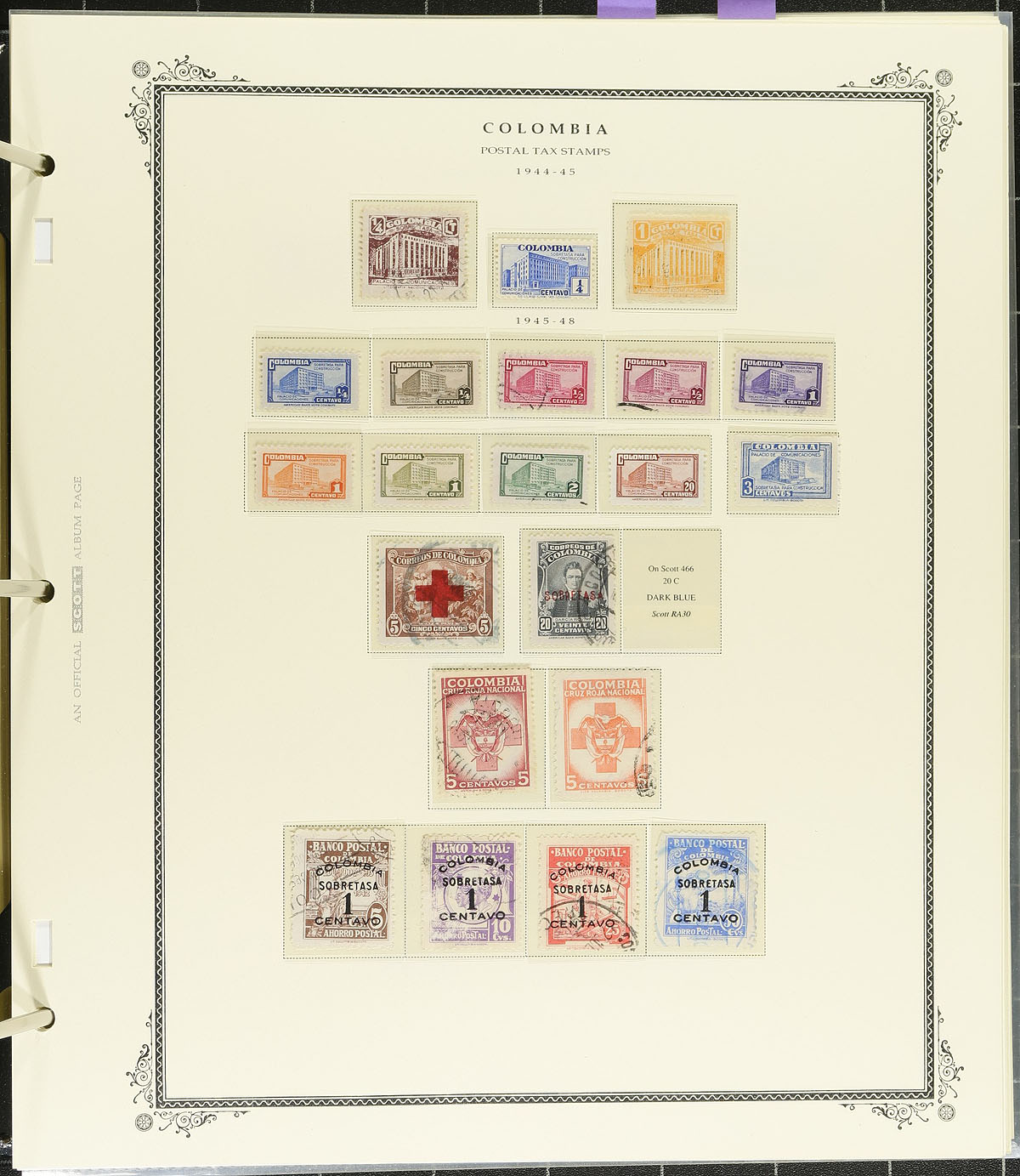 Nice collection of primarily mint Colombia, 1865-1977, containing roughly 1,225 stamps, well organized in several hingeless Scott Specialty album pages housed in a binder. The strength of the collection ranges from the 1880's up to the 1970's, and includes "back of the book" issues noting airmails, Colombia States, and more. A spot check indicated some stamps and sets ranging from $5 to $15 each. Owner's older Scott catalogue value for the collection totals US$1,331.00 ($1796.85 CDN). A nice collection that should be expanded, overall fine to very fine. Estimate =