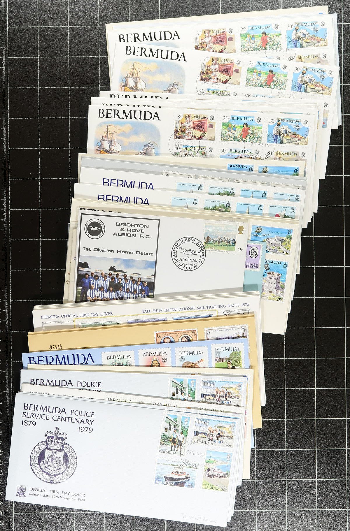Group of roughly 200 British Commonwealth covers, 1940s-1980s, primarily first day covers, with better representation from Great Britain, New Zealand, Bermuda, and South Africa, noting single and sets frankings, and a handful of Great Britain covers signed by notable people. A nice group for the collector or dealer, as a few covers have been priced in the $5 to $10 range. Estimate =