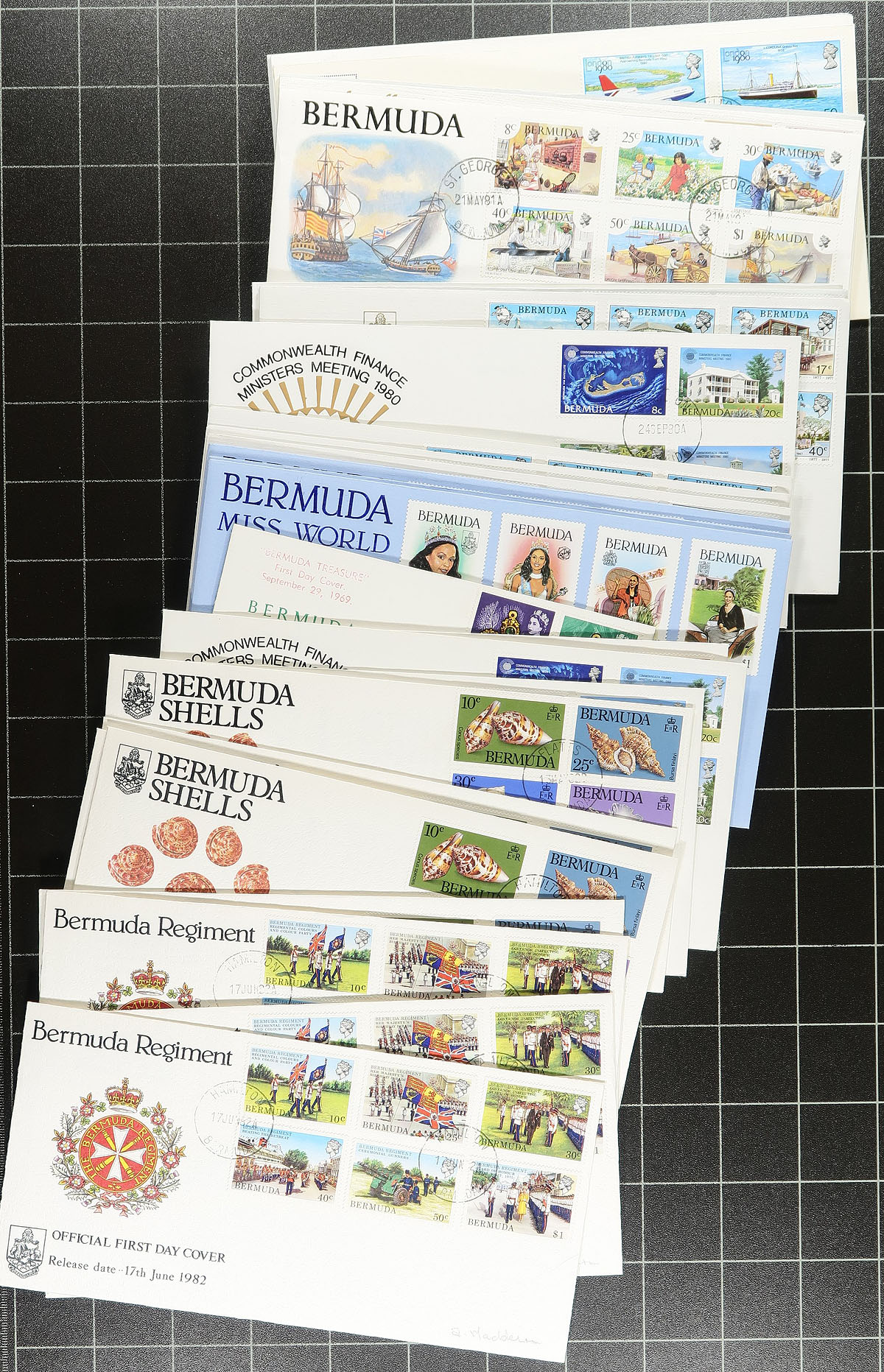 Group of roughly 200 British Commonwealth covers, 1940s-1980s, primarily first day covers, with better representation from Great Britain, New Zealand, Bermuda, and South Africa, noting single and sets frankings, and a handful of Great Britain covers signed by notable people. A nice group for the collector or dealer, as a few covers have been priced in the $5 to $10 range. Estimate =