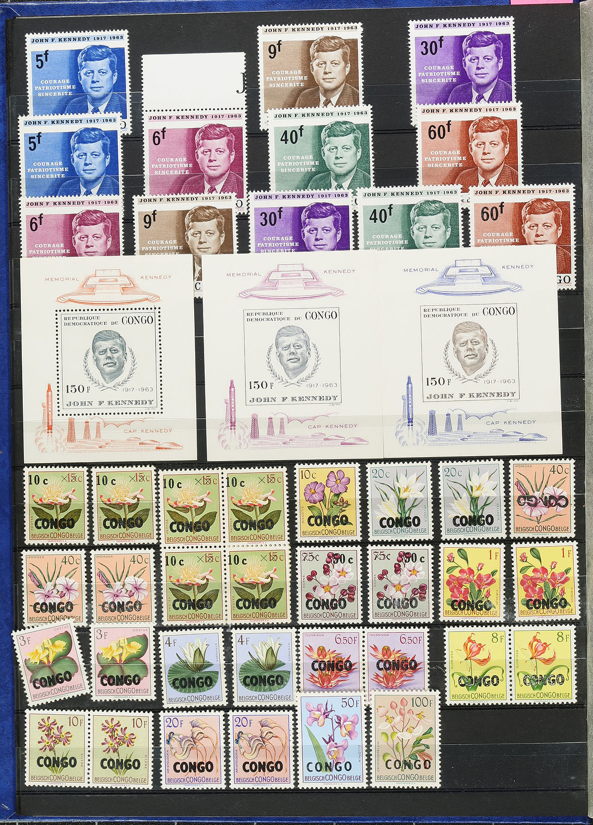 Collection / accumulation of primarily mint never hinged Congo Democratic Republic, 1960's-1971, containing many hundreds of stamps, primarily sets, housed in a stockbook. The collection appears to be fairly complete in period, including a few souvenir sheets (including a few imperforates), along with a selection of Zaire and Belgian Congo issues. A spot check indicated a few sets and souvenir sheets cataloguing in the $5 to $15 and up range. A nice colorful lot for topical and thematic collectors. Estimate =