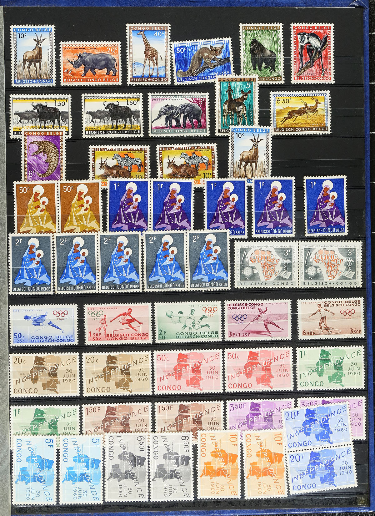 Collection / accumulation of primarily mint never hinged Congo Democratic Republic, 1960's-1971, containing many hundreds of stamps, primarily sets, housed in a stockbook. The collection appears to be fairly complete in period, including a few souvenir sheets (including a few imperforates), along with a selection of Zaire and Belgian Congo issues. A spot check indicated a few sets and souvenir sheets cataloguing in the $5 to $15 and up range. A nice colorful lot for topical and thematic collectors. Estimate =