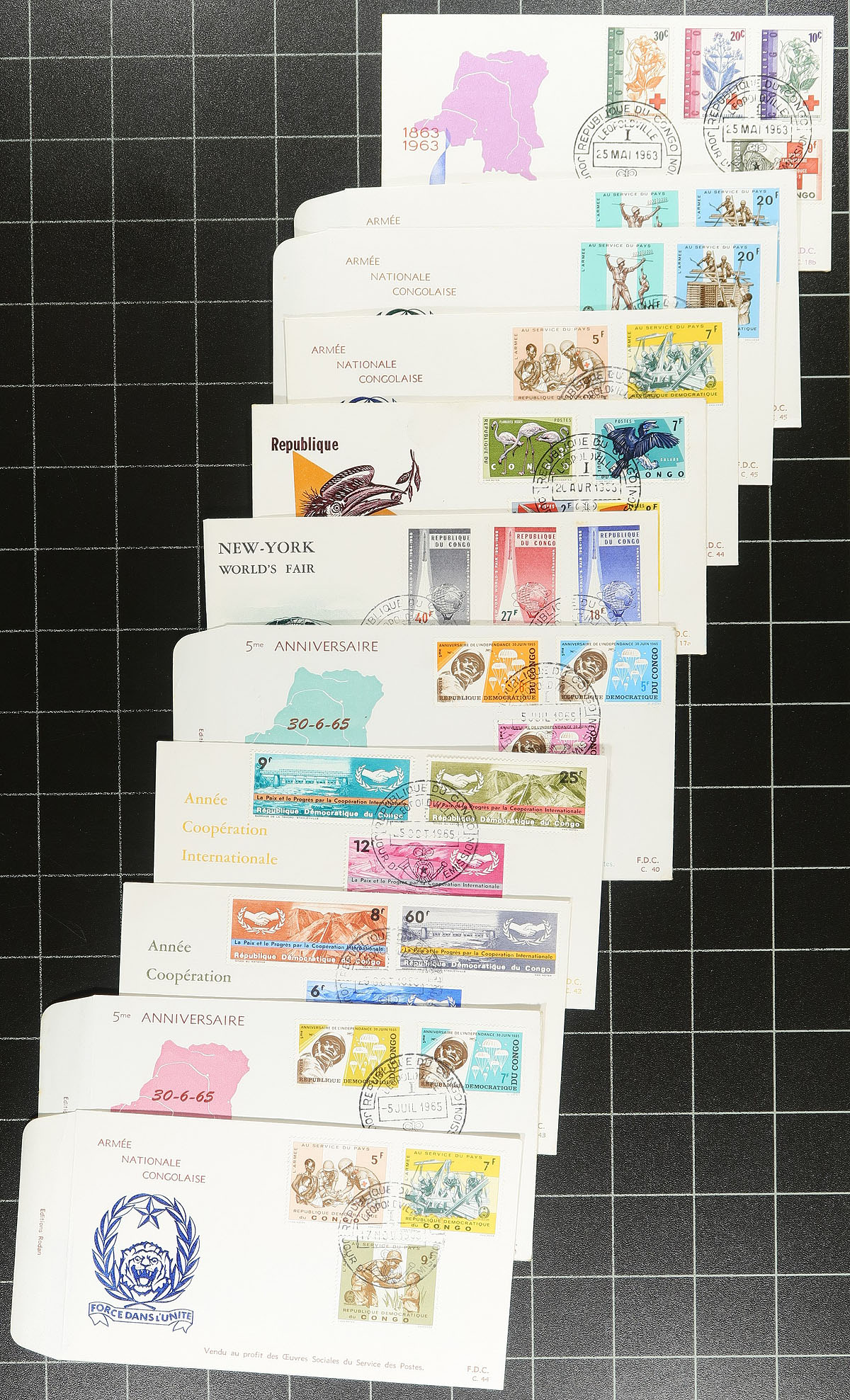 Interesting group of roughly 200 France and French colony covers, containing roughly 130 "souvenir covers" as the majority have singles and sets from the 1940's with 2006 postmarks from Guyane, along with a few commercial covers and first day covers from the Congo, Democratic Republic. A nice lot for cover collector. Estimate =
