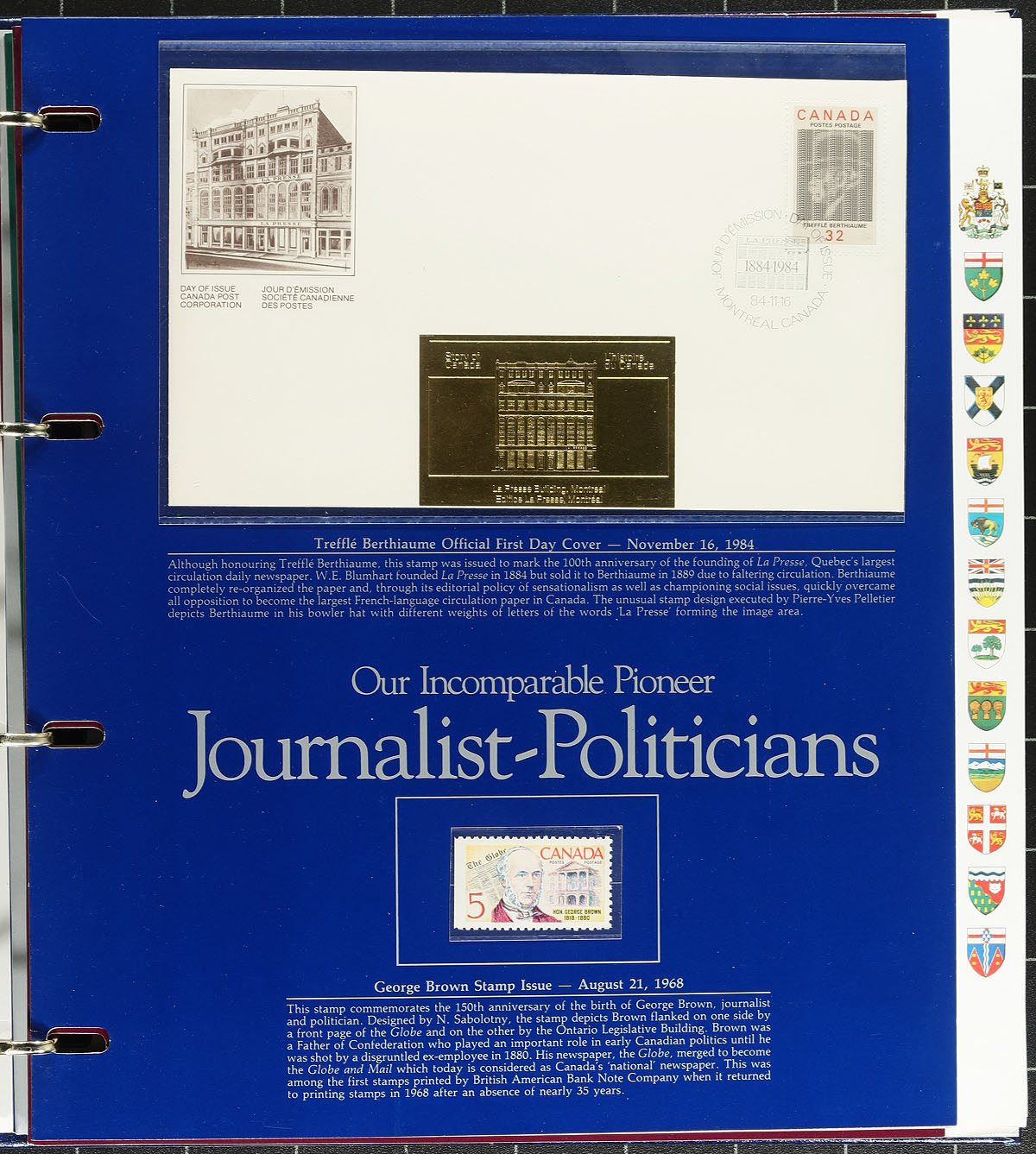 Carton full of thematic collections including: The Story of Canada, Vol I and II; Presidents of the United States; Fleetwood FDC of the month for years 1979, 1981, 1984. Plenty of useful material for the topical or thematic collector, or cover collector in general. Estimate =