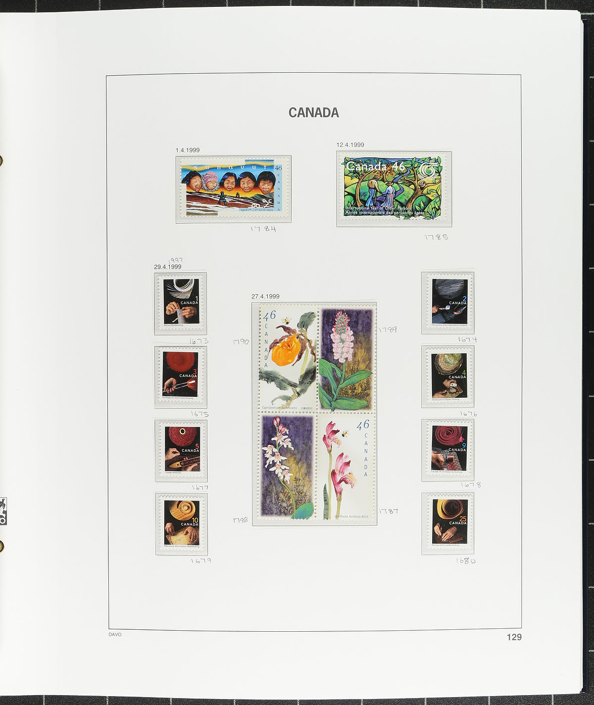Deluxe DAVO Hingeless Canada Album (Volume II, 1999-2005) with matching slipcase, containing 413 stamps and 49 souvenir sheets, all Never Hinged and largely complete for the period. The album alone would retail for at least a couple hundred dollars, and is in excellent condition. Conservatively valued for the total usable postage. Total face value =
