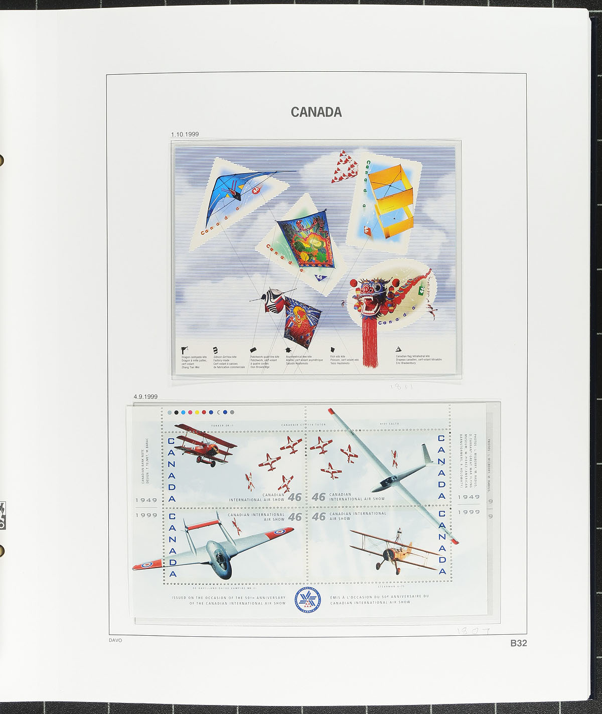 Deluxe DAVO Hingeless Canada Album (Volume II, 1999-2005) with matching slipcase, containing 413 stamps and 49 souvenir sheets, all Never Hinged and largely complete for the period. The album alone would retail for at least a couple hundred dollars, and is in excellent condition. Conservatively valued for the total usable postage. Total face value =