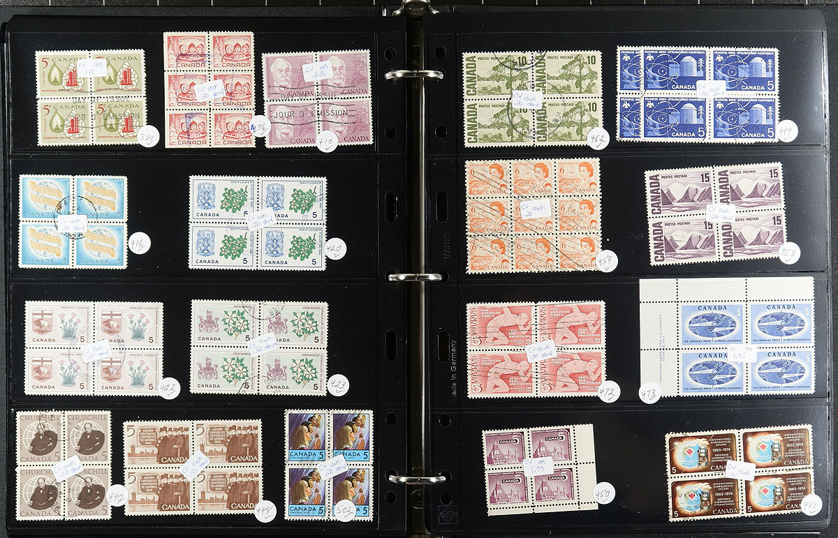 Used Blocks. A Unisafe brand block album, filled with 479 used blocks from the 1930's to early 2000's, including Plate Blocks. Noted some duplication, but also a nice variety spanning the decades, with many nicely cancelled. Estimate =