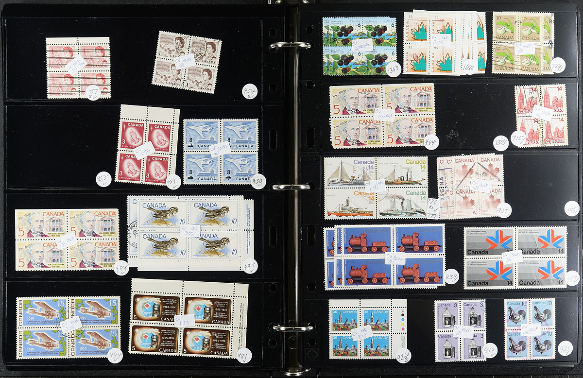 Used Blocks. A Unisafe brand block album, filled with 479 used blocks from the 1930's to early 2000's, including Plate Blocks. Noted some duplication, but also a nice variety spanning the decades, with many nicely cancelled. Estimate =
