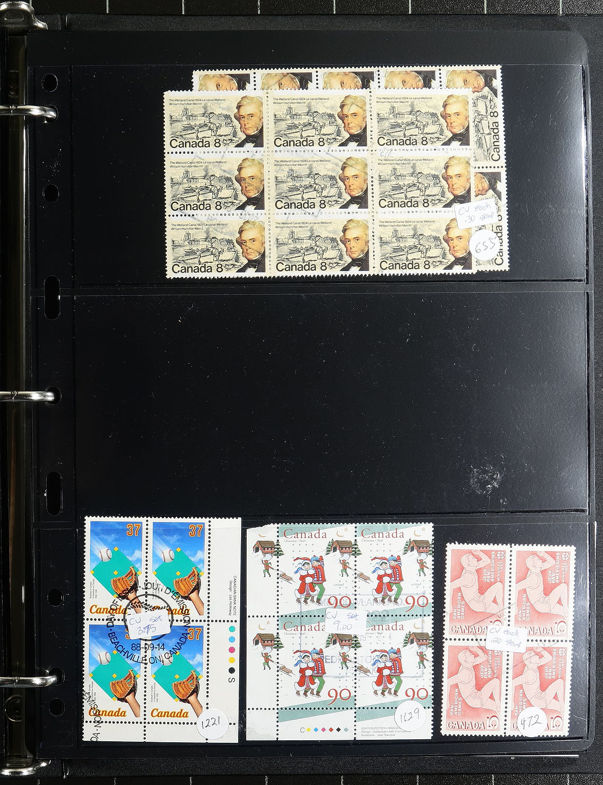 Used Blocks. A Unisafe brand block album, filled with 479 used blocks from the 1930's to early 2000's, including Plate Blocks. Noted some duplication, but also a nice variety spanning the decades, with many nicely cancelled. Estimate =