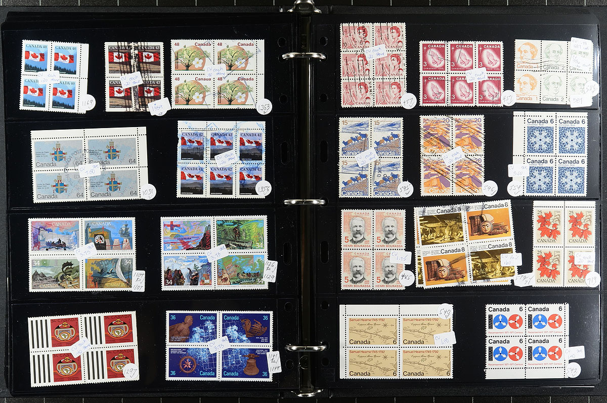 Used Blocks. A Unisafe brand block album, filled with 479 used blocks from the 1930's to early 2000's, including Plate Blocks. Noted some duplication, but also a nice variety spanning the decades, with many nicely cancelled. Estimate =