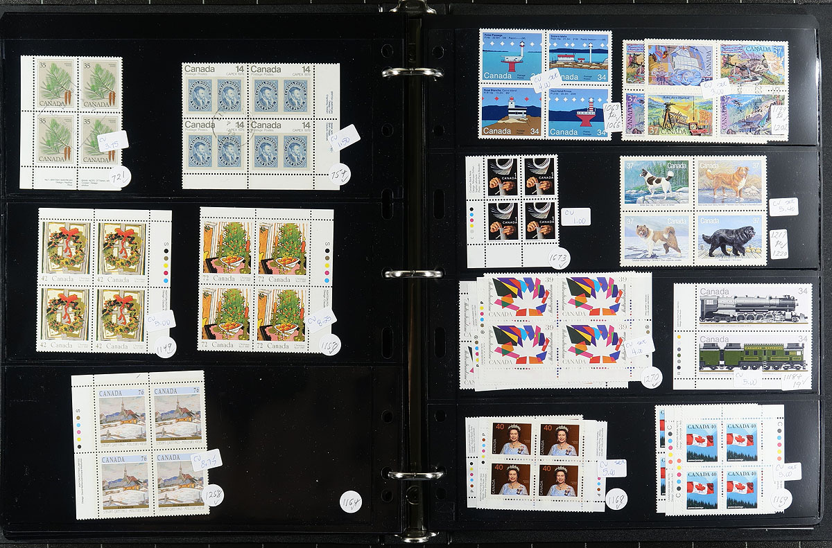 Used Blocks. A Unisafe brand block album, filled with 479 used blocks from the 1930's to early 2000's, including Plate Blocks. Noted some duplication, but also a nice variety spanning the decades, with many nicely cancelled. Estimate =