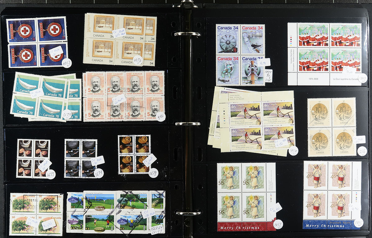Used Blocks. A Unisafe brand block album, filled with 479 used blocks from the 1930's to early 2000's, including Plate Blocks. Noted some duplication, but also a nice variety spanning the decades, with many nicely cancelled. Estimate =