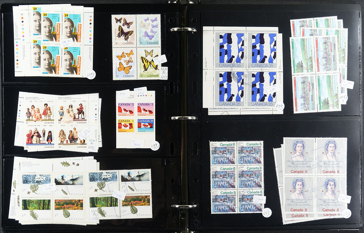 Used Blocks. A Unisafe brand block album, filled with 479 used blocks from the 1930's to early 2000's, including Plate Blocks. Noted some duplication, but also a nice variety spanning the decades, with many nicely cancelled. Estimate =