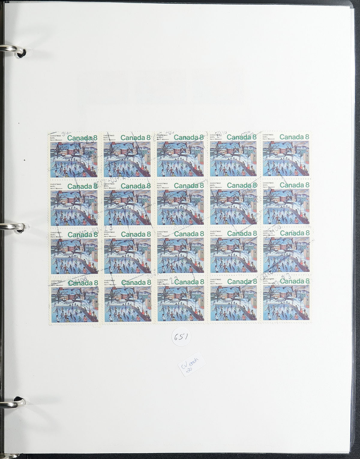 Used Blocks. A Unisafe brand block album, filled with 479 used blocks from the 1930's to early 2000's, including Plate Blocks. Noted some duplication, but also a nice variety spanning the decades, with many nicely cancelled. Estimate =