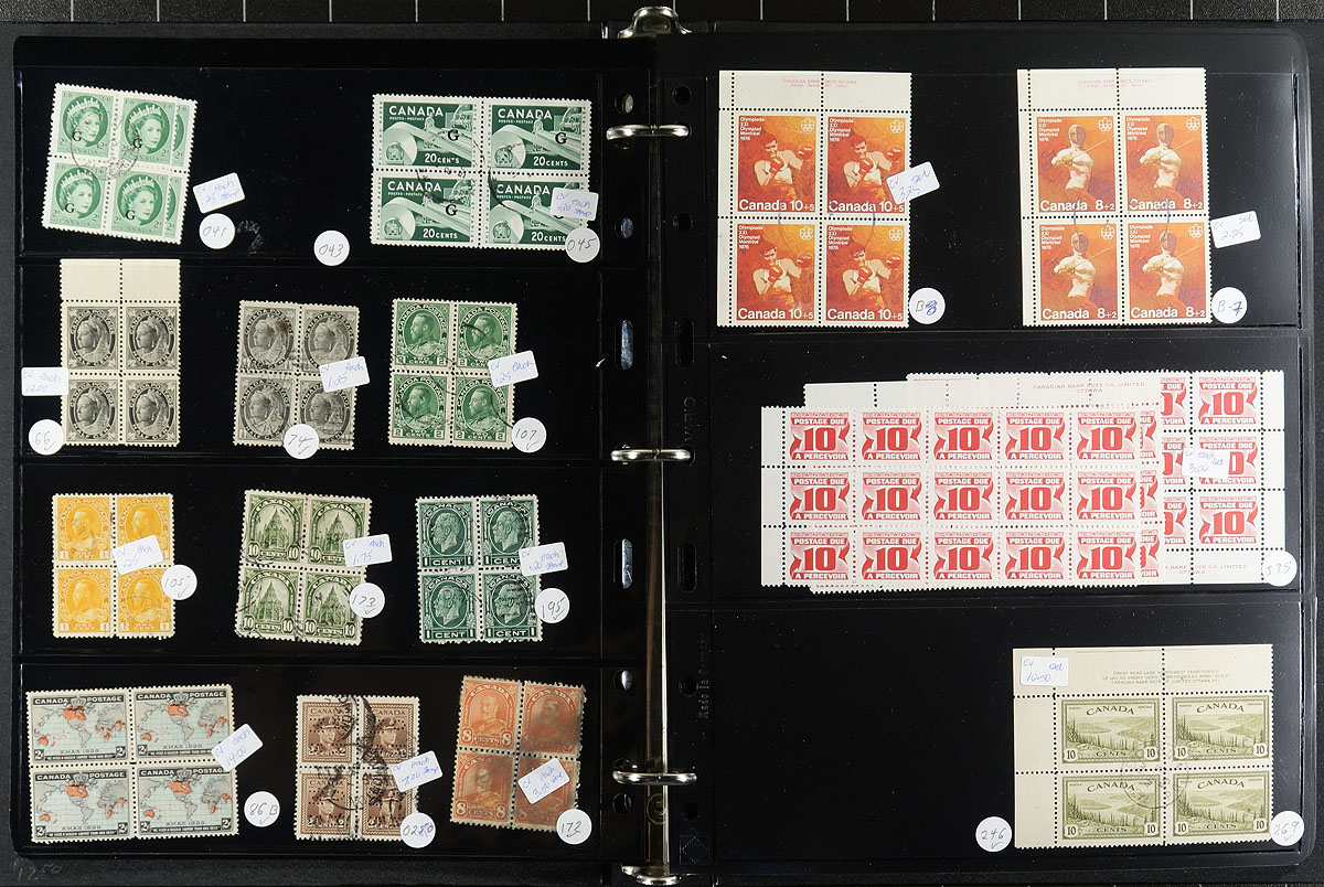 Used Blocks. A Unisafe brand block album, filled with 479 used blocks from the 1930's to early 2000's, including Plate Blocks. Noted some duplication, but also a nice variety spanning the decades, with many nicely cancelled. Estimate =