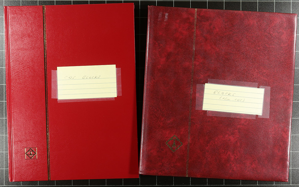 Used Block Accumulation. A collector's assembly of used blocks, arranged in two Lighthouse stockbooks, one designated "CDS Blocks", the other "NON-CDS Blocks". Noted several better items, ranging from George V to QEII, including high-values, booklet panes, plate blocks etc. Nice quality overall, with two nice stockbooks that would cost $40 alone these days. Estimate =