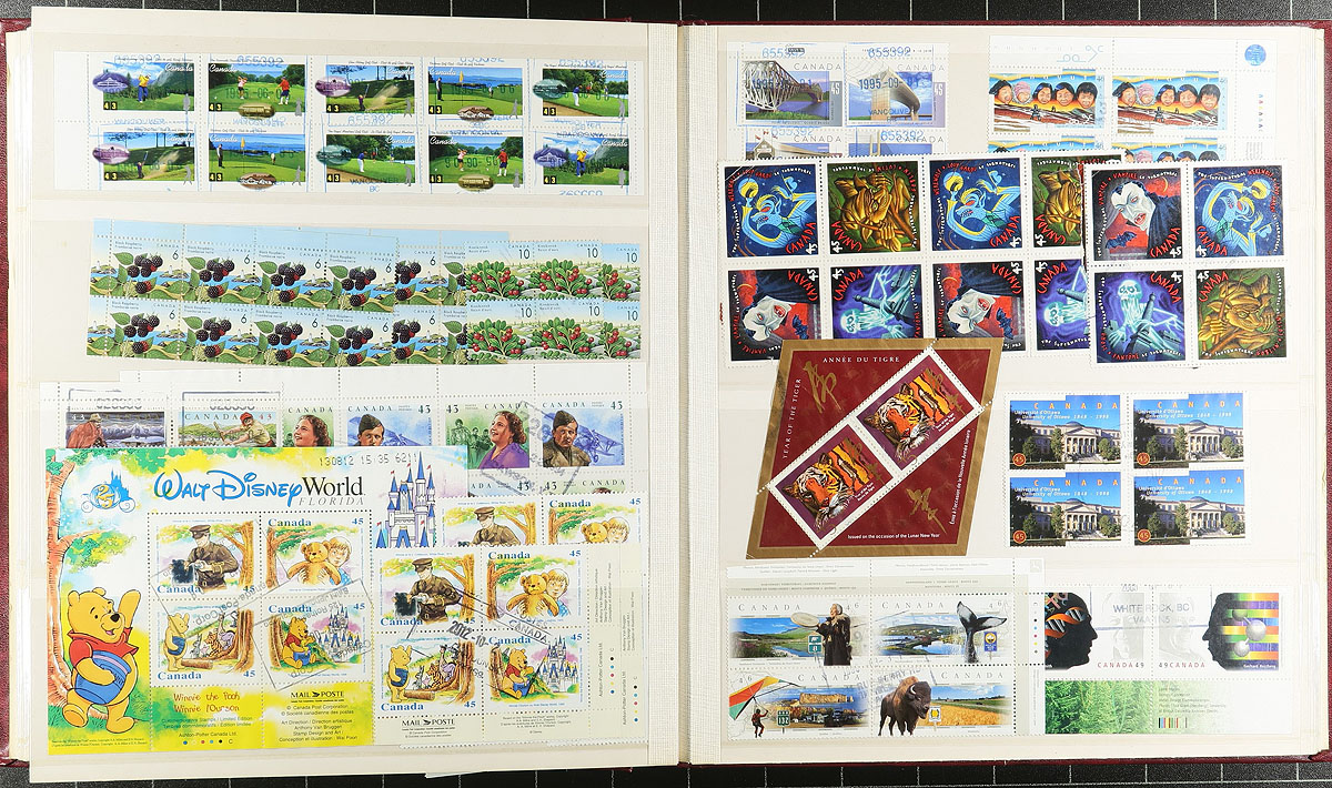 Used Block Accumulation. A collector's assembly of used blocks, arranged in two Lighthouse stockbooks, one designated "CDS Blocks", the other "NON-CDS Blocks". Noted several better items, ranging from George V to QEII, including high-values, booklet panes, plate blocks etc. Nice quality overall, with two nice stockbooks that would cost $40 alone these days. Estimate =