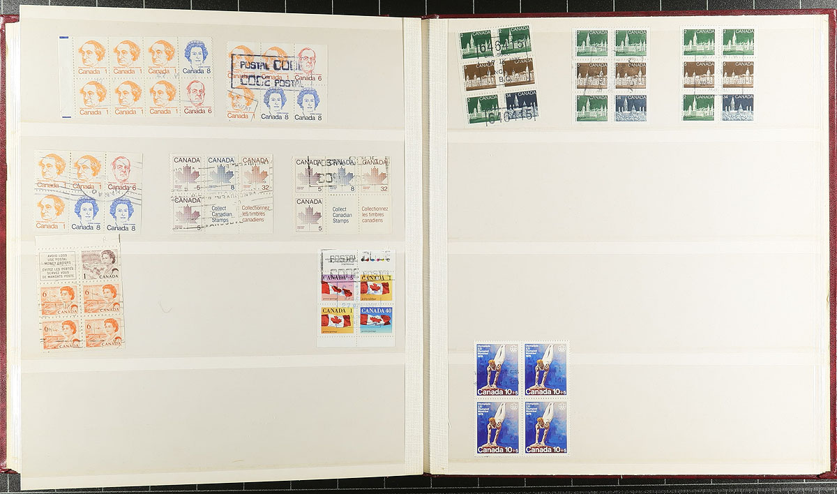 Used Block Accumulation. A collector's assembly of used blocks, arranged in two Lighthouse stockbooks, one designated "CDS Blocks", the other "NON-CDS Blocks". Noted several better items, ranging from George V to QEII, including high-values, booklet panes, plate blocks etc. Nice quality overall, with two nice stockbooks that would cost $40 alone these days. Estimate =
