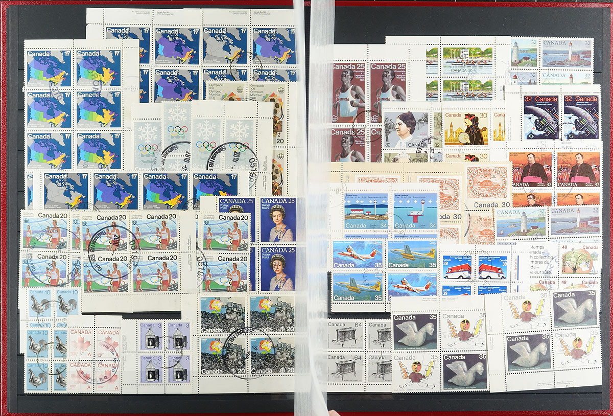 Used Block Accumulation. A collector's assembly of used blocks, arranged in two Lighthouse stockbooks, one designated "CDS Blocks", the other "NON-CDS Blocks". Noted several better items, ranging from George V to QEII, including high-values, booklet panes, plate blocks etc. Nice quality overall, with two nice stockbooks that would cost $40 alone these days. Estimate =