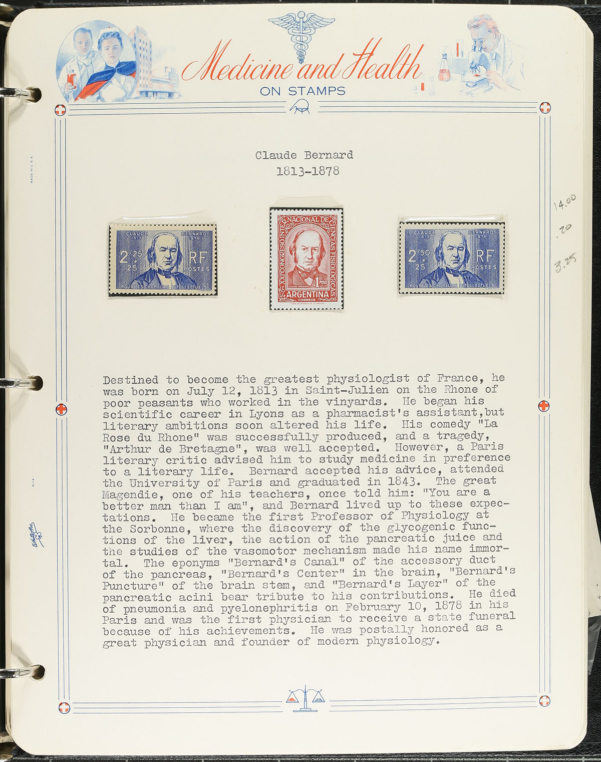 Men of Medicine Topical Collection. A 2-volume collection, in specially produced "White Ace" albums / pages (about 100 pages total) containing singles and sets, all featuring "Men of Medicine" with extensive research typed on each page. Over 325 stamps in total, with a catalogue value that would likely be +/- $500.00 combined. Estimate =