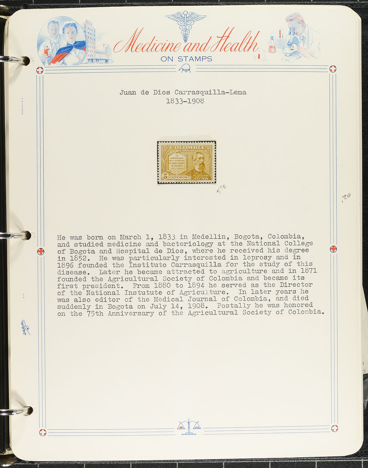 Men of Medicine Topical Collection. A 2-volume collection, in specially produced "White Ace" albums / pages (about 100 pages total) containing singles and sets, all featuring "Men of Medicine" with extensive research typed on each page. Over 325 stamps in total, with a catalogue value that would likely be +/- $500.00 combined. Estimate =