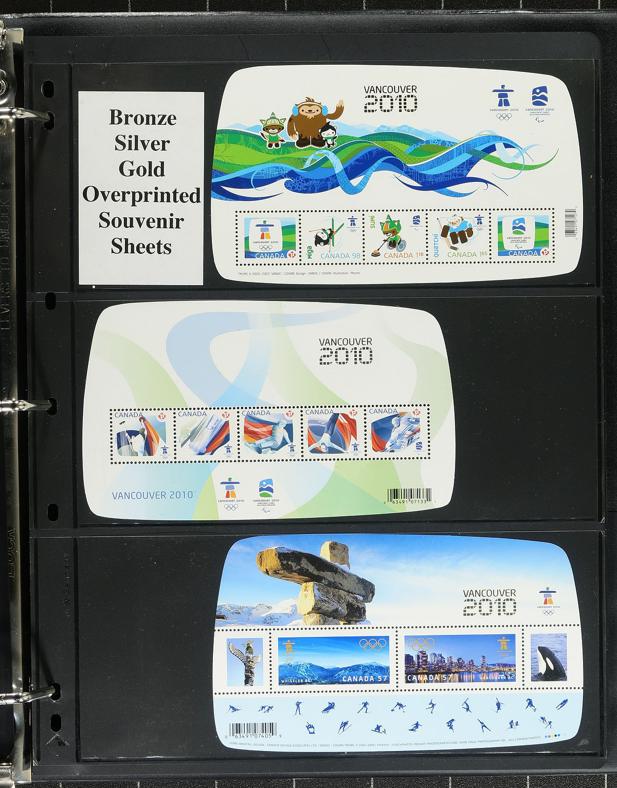 Diverse "catch all" consignment balance, including 22 Airmail First Flight Covers (on stockpages, in binder), 2010 Vancouver Olympics "Gold Medal Winners" collection in album with souvenir sheets and special postmarks (available at the venue only), a couple dozen QEII complete booklets, a bundle of Postal Stationery (dozens, including the "Birds of Canada" letter-writing kit), a bundle of 125 "stamp correspondence" covers from receiving philatelic mail (including Worldwide as well) and a 16-page Lighthouse stockbook with "CDS on Piece" stamps / covers / postcards neatly cancelled with hand-applied postmarks. Clean material and well organized throughout. Estimate =