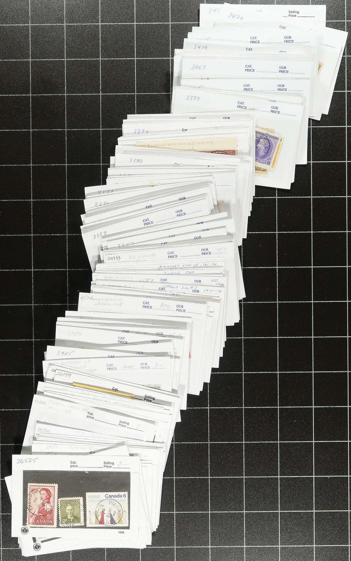 Selection of "socked on the nose" postmarks. Over 100x "102" cards, stuffed with 1-10 cancels each, seemingly mostly all-different from across the country, from QV to QEII. Quality of strikes is well above average, with (our estimate) over 700 postmarks in total. Estimate =