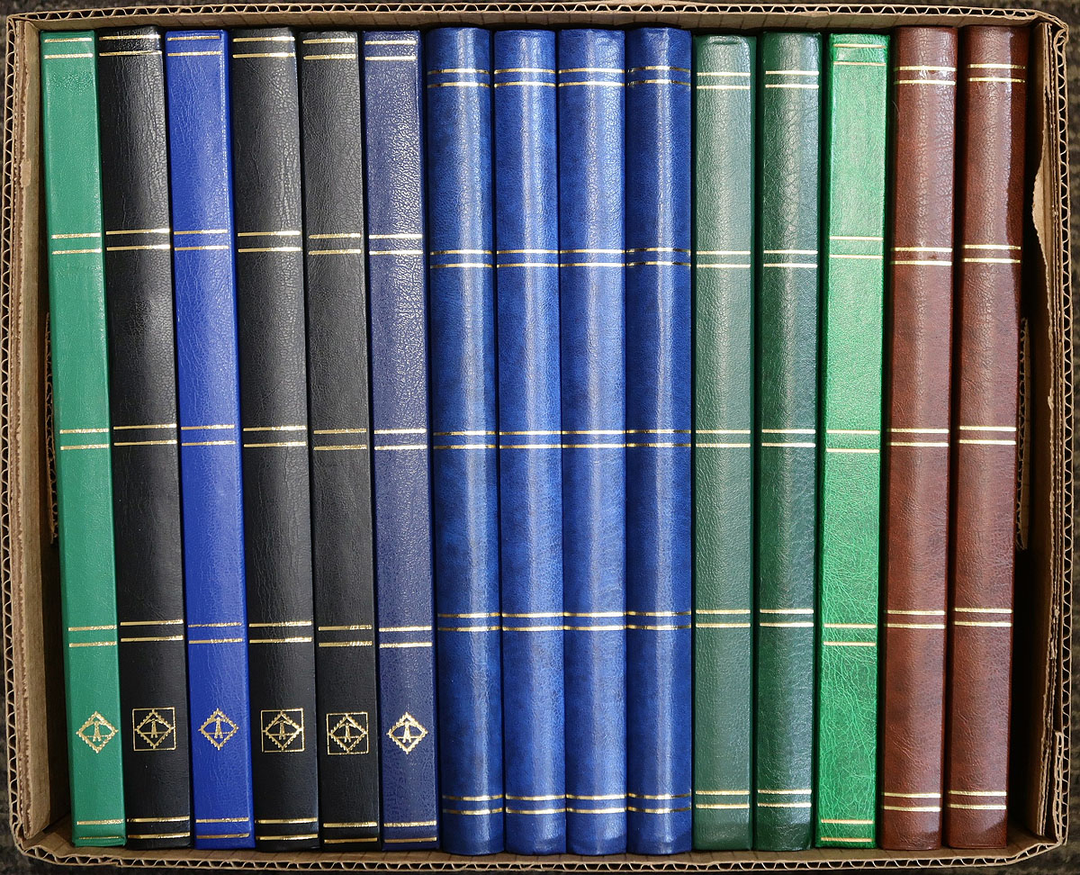 Lightly used selection of 15 stockbooks, all 32-page books, produced by Lighthouse (6), Westbury (4) and Unisafe (5) and all with white-pages. The cost of stockbooks has risen dramatically the past few years, with this group easily retailing as new for $300.00+. Estimate =