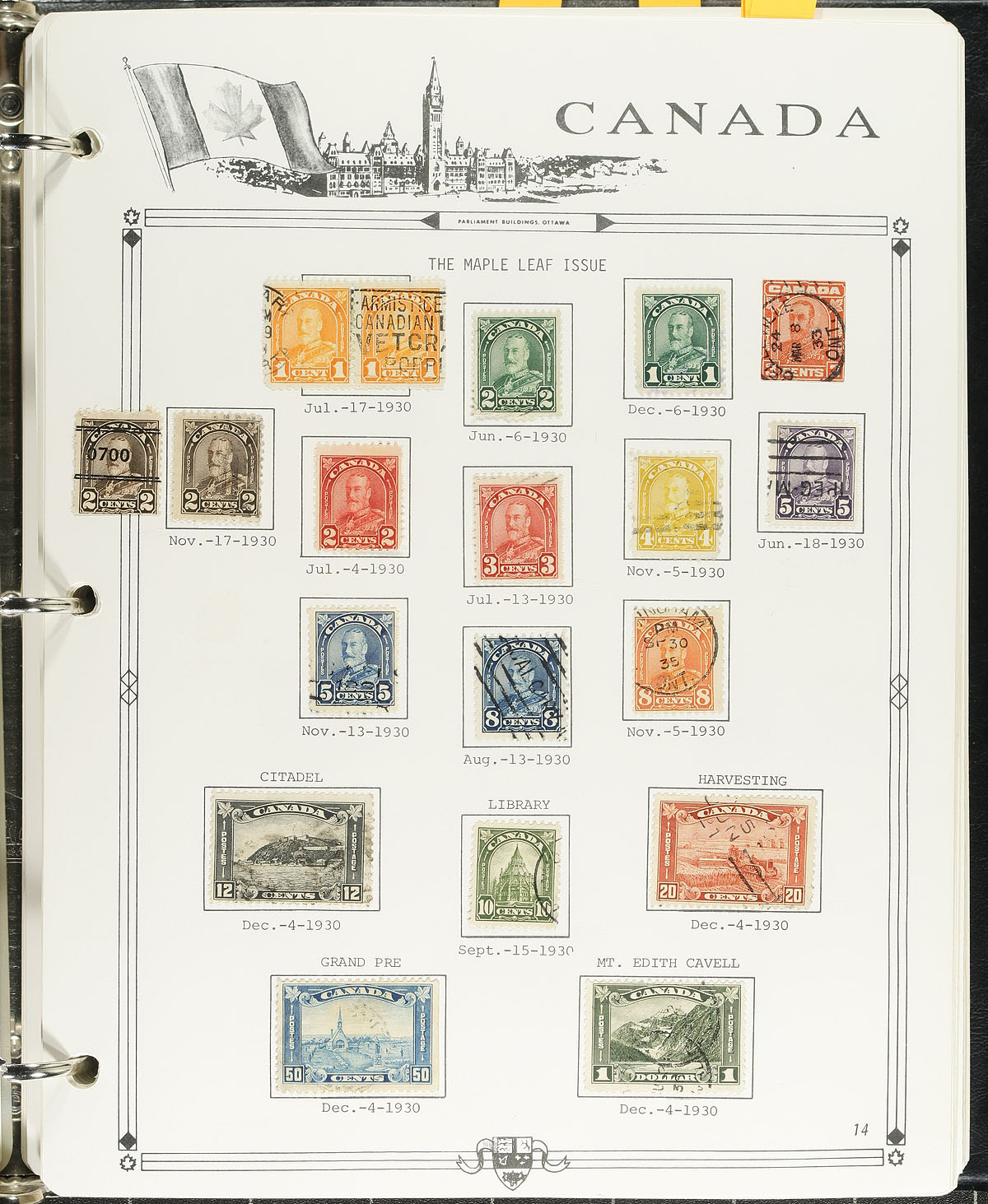 Pleasant collection of used Canada, 1851-1992, containing many hundreds of stamps on Parliament album pages in a binder. The collection begins with early examples with Scott #s 4 (faulty), 14, 15, 17, 19, 21, 22, 24, 25, 27, 29, 30, with 14 Small Queens, including 10c (x2), 20c and 50c Widow Weeds, 7 Jubilees (including 20c), sets of Leafs, Numerals, Edwards, mint no gum set of Quebecs, and back to used sets of Admirals, Scrolls (noting a nice $1 Parliament with cds postmark), and appears to be 95% complete up to 1992. The collection also includes selections of back of the book material, a few perfins and precancels. The lot also includes the owner's accumulation of used worldwide stamps (including more Canada), in a variety of formats, with better finds left to the dedicated collector. A few faults with a few of the early stamps, still a nice collection for any collector. Estimate =