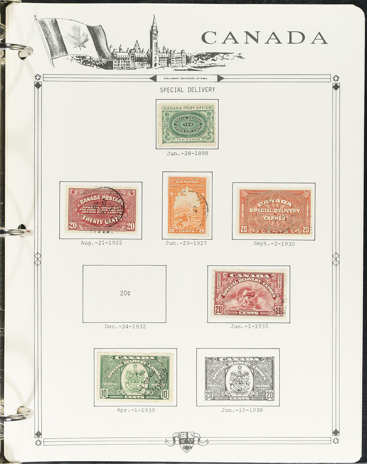 Pleasant collection of used Canada, 1851-1992, containing many hundreds of stamps on Parliament album pages in a binder. The collection begins with early examples with Scott #s 4 (faulty), 14, 15, 17, 19, 21, 22, 24, 25, 27, 29, 30, with 14 Small Queens, including 10c (x2), 20c and 50c Widow Weeds, 7 Jubilees (including 20c), sets of Leafs, Numerals, Edwards, mint no gum set of Quebecs, and back to used sets of Admirals, Scrolls (noting a nice $1 Parliament with cds postmark), and appears to be 95% complete up to 1992. The collection also includes selections of back of the book material, a few perfins and precancels. The lot also includes the owner's accumulation of used worldwide stamps (including more Canada), in a variety of formats, with better finds left to the dedicated collector. A few faults with a few of the early stamps, still a nice collection for any collector. Estimate =