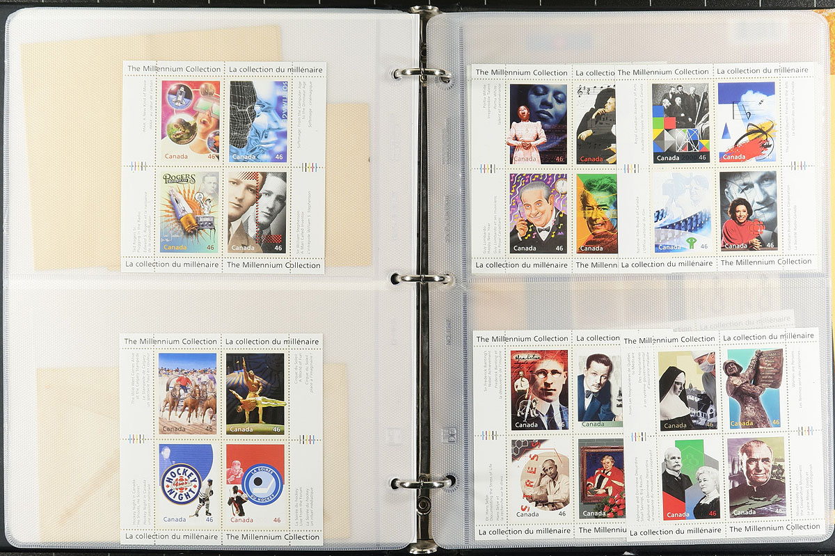Pleasant collection of used Canada, 1851-1992, containing many hundreds of stamps on Parliament album pages in a binder. The collection begins with early examples with Scott #s 4 (faulty), 14, 15, 17, 19, 21, 22, 24, 25, 27, 29, 30, with 14 Small Queens, including 10c (x2), 20c and 50c Widow Weeds, 7 Jubilees (including 20c), sets of Leafs, Numerals, Edwards, mint no gum set of Quebecs, and back to used sets of Admirals, Scrolls (noting a nice $1 Parliament with cds postmark), and appears to be 95% complete up to 1992. The collection also includes selections of back of the book material, a few perfins and precancels. The lot also includes the owner's accumulation of used worldwide stamps (including more Canada), in a variety of formats, with better finds left to the dedicated collector. A few faults with a few of the early stamps, still a nice collection for any collector. Estimate =