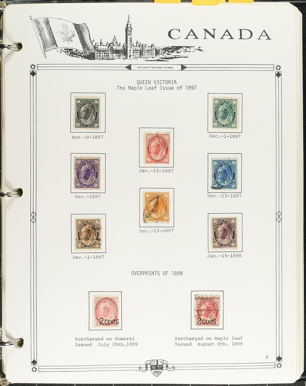 Pleasant collection of used Canada, 1851-1992, containing many hundreds of stamps on Parliament album pages in a binder. The collection begins with early examples with Scott #s 4 (faulty), 14, 15, 17, 19, 21, 22, 24, 25, 27, 29, 30, with 14 Small Queens, including 10c (x2), 20c and 50c Widow Weeds, 7 Jubilees (including 20c), sets of Leafs, Numerals, Edwards, mint no gum set of Quebecs, and back to used sets of Admirals, Scrolls (noting a nice $1 Parliament with cds postmark), and appears to be 95% complete up to 1992. The collection also includes selections of back of the book material, a few perfins and precancels. The lot also includes the owner's accumulation of used worldwide stamps (including more Canada), in a variety of formats, with better finds left to the dedicated collector. A few faults with a few of the early stamps, still a nice collection for any collector. Estimate =