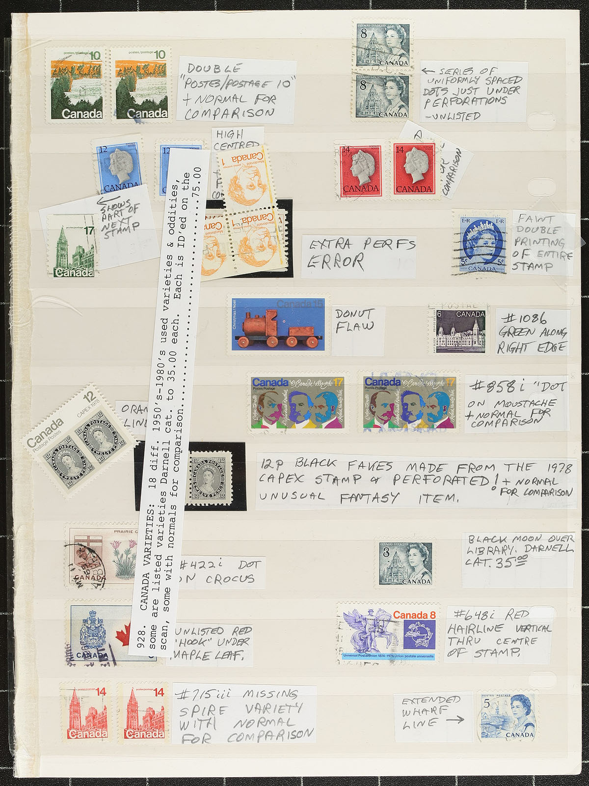Stock of used Canada #1. Small Queens to the 1990's, containing well over 1,000 stamps in a variety of formats with roughly 70 album, stock, or manila pages. A spot check indicated low denomination Small Queens, Jubilees, Leafs up to Quebecs, with better representation from the Admirals to the 1940's (including a few sets), along with some modern material, varieties, etc. Postmark interest includes cds, duplex, split ring, a few squared circles, and more, noting many socked on the nose town cancels. Duplication up to 10 for some issues. A nice lot, with a potentially high catalogue value, for the used collector or postmark hunter. Estimate =