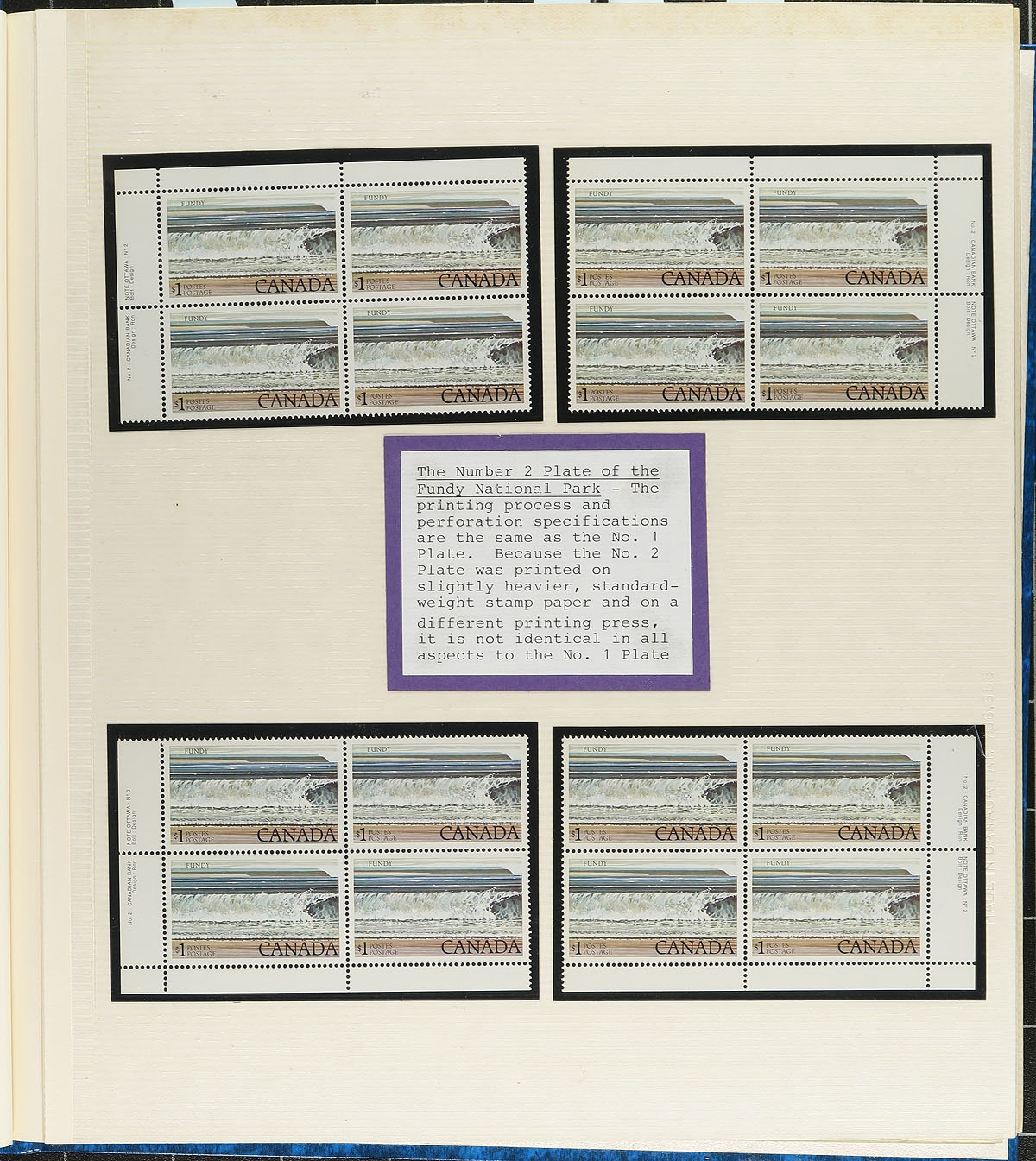 Collection of mint never hinged Canada from 1981, covering Unitrade #s 878-908, in a photo album, with all the material protected in hingeless mounts. The lot includes matched set of plate blocks for all the issues, along with first day covers, and Canada Post announcements. Face value for the lot totals $134.00 alone. A nice lot for collectors and postage users. Estimate =