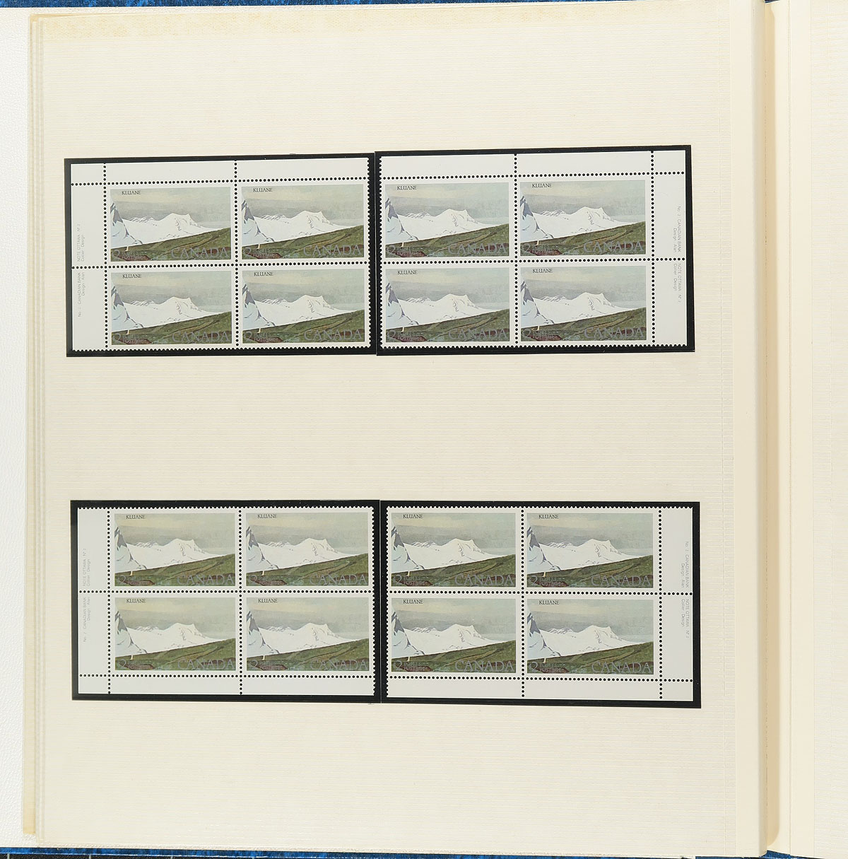 Collection of mint never hinged Canada from 1981, covering Unitrade #s 878-908, in a photo album, with all the material protected in hingeless mounts. The lot includes matched set of plate blocks for all the issues, along with first day covers, and Canada Post announcements. Face value for the lot totals $134.00 alone. A nice lot for collectors and postage users. Estimate =