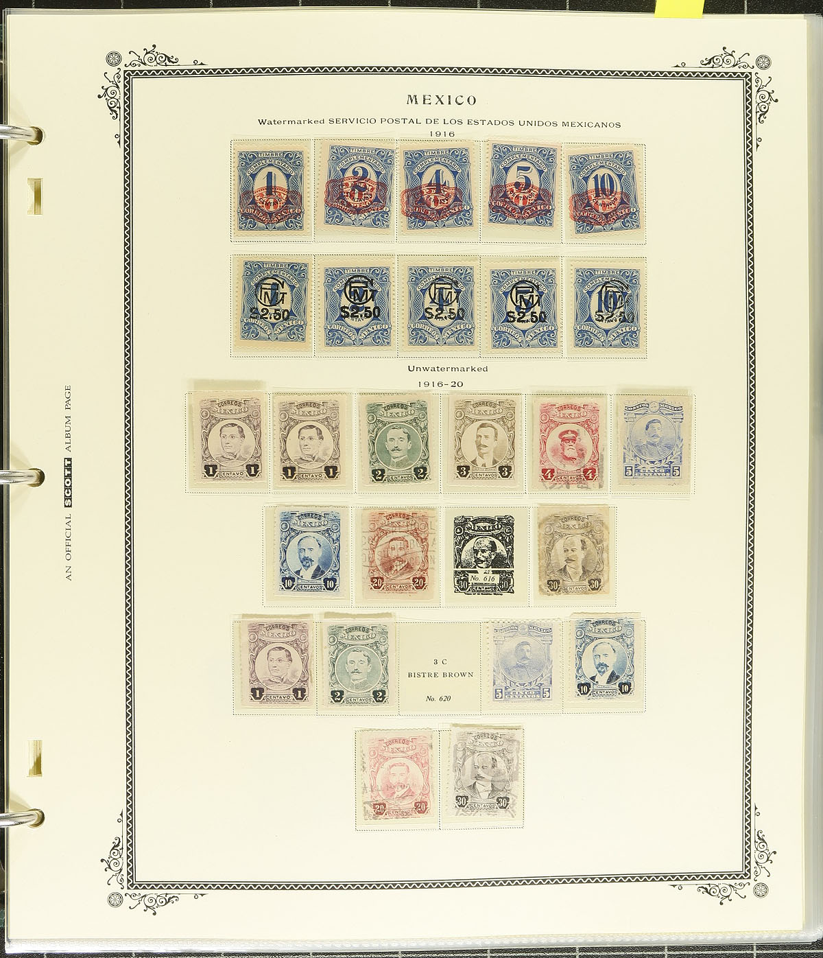 Lovely and valuable collection of primarily mint Mexico, 1856-1990, containing roughly 1,275 stamps (including strips and souvenir sheets), in a thick hingeless Scott Specialty album. The collection ranges from Scott #1/1650, noting just a few of the better stamps with #s 46-49 (used, $160 total), 114 (mh, $110), along with many singles, sets, and partial sets cataloguing $20 to $45 and up each. Owner's 2025 Scott catalogue for the collection totals $11,656, but use a cautious eye on some of the earlier material, and expect the odd fault. The online photos showing a sampling. A lovely collection that should be expanded, overall fine to very fine. 2025 Scott US$11656.00 =