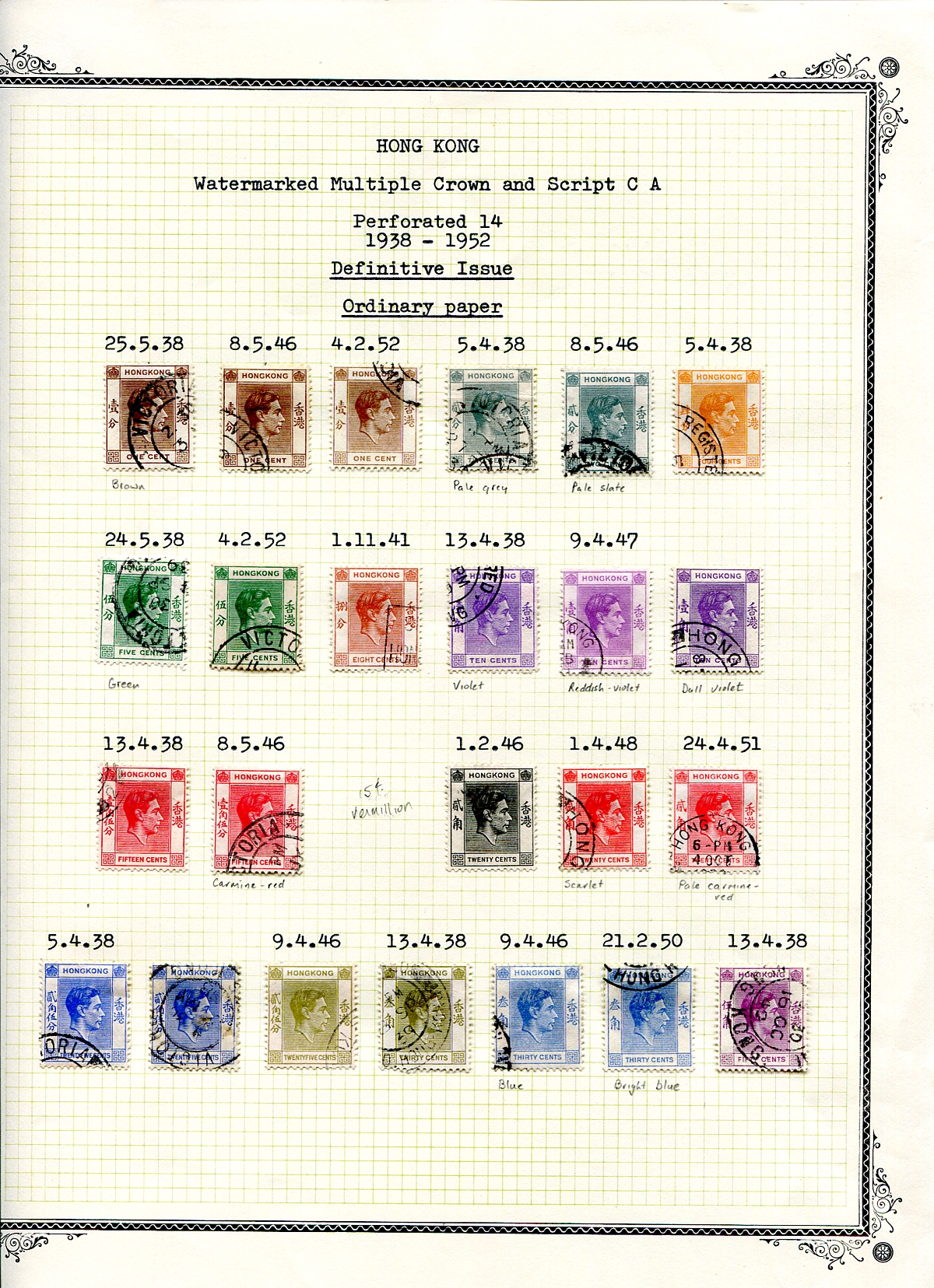 Attractive assembly of 53 stamps (and one cover) 1938-1952 neatly arranged and identified on homemade album pages. Included a registered cover with 4x #159 (with broken Chinese character, listed in Gibbons at £50.00). 2025 Scott US$578.25 =