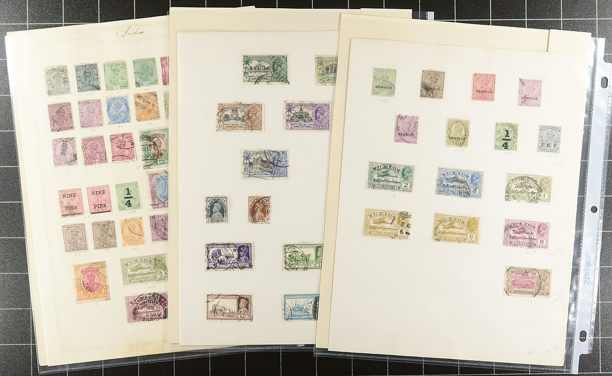 A wild ride of mint and used India 1854-1951 arranged on a collector's home-made pages. Includes a range between #2/232, plus Officials, Military Stamps, Airmail and Indian States. A total of 1435 stamps, with duplication, but also a wealth of postmark interest. An old-time holding, which we have cleaned up a bit (and put the loose stamps on a stockpage). Expect a few small faults, but overall a very clean and interesting offering. Catalogued in 2025 Scott at $2429.35 ($3279.60 CDN), but since this lot is so diverse, we have decided to use an estimate instead. Estimate =