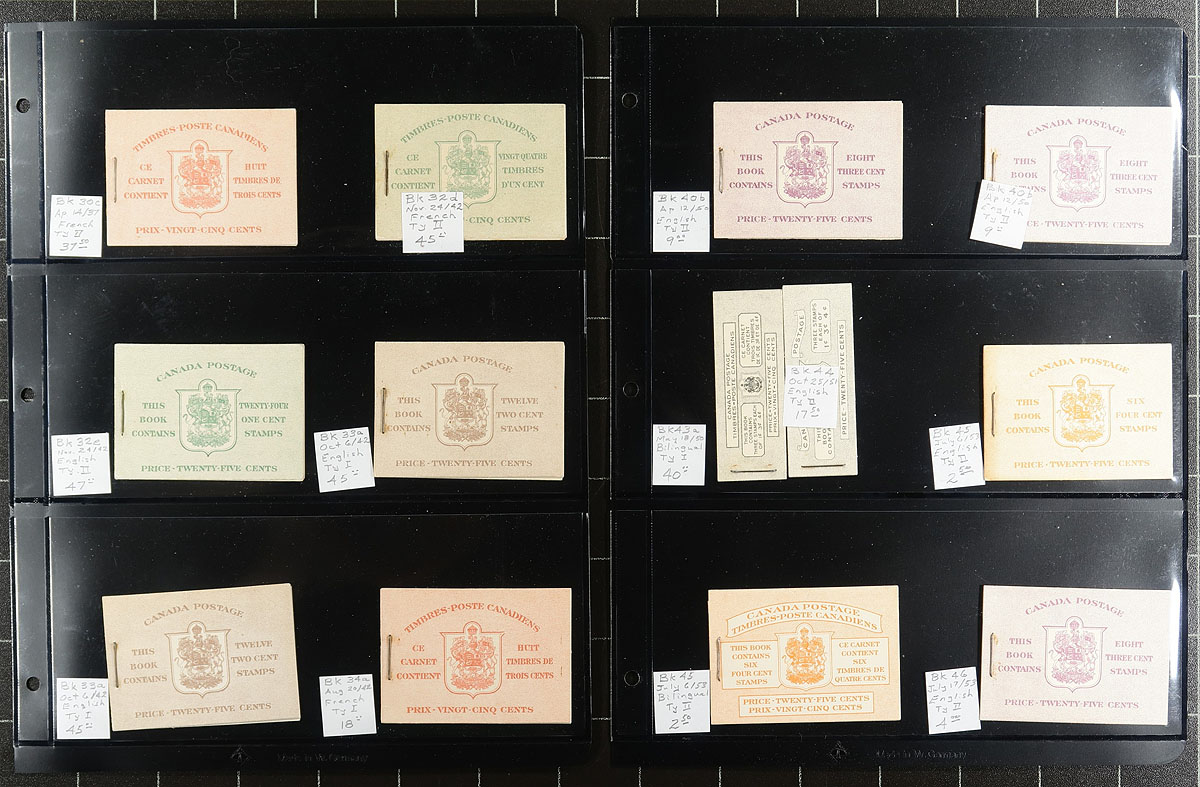 Collection of 61 booklets, from the 1937-1971 period, all neatly arranged and identified on stockpages. A nice mix of booklets here, including English, French and Billingual, with variety in rate pages as well. A couple duplicates noted, but overall a very diverse offering. Catalogued as basic booklets by the owner, with no premiums for VF / clean booklets placed on the earlier material. Owner's 2023 Unitrade =