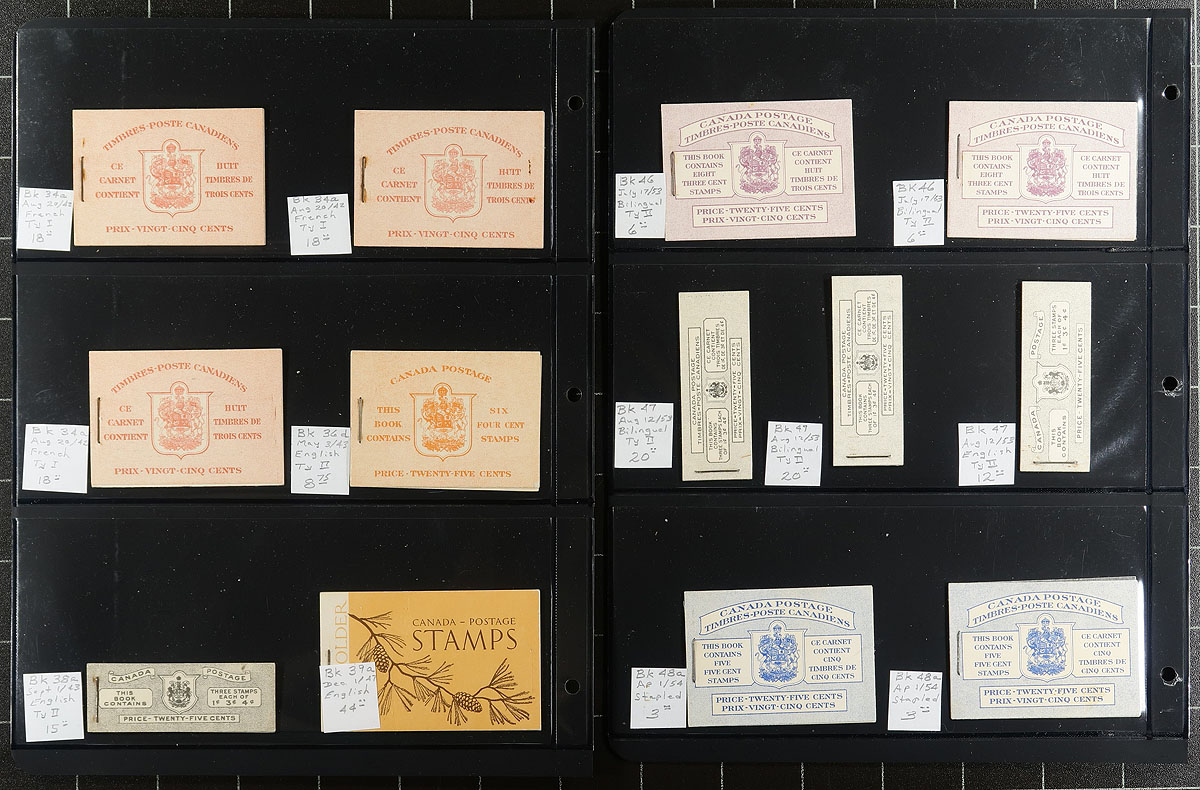 Collection of 61 booklets, from the 1937-1971 period, all neatly arranged and identified on stockpages. A nice mix of booklets here, including English, French and Billingual, with variety in rate pages as well. A couple duplicates noted, but overall a very diverse offering. Catalogued as basic booklets by the owner, with no premiums for VF / clean booklets placed on the earlier material. Owner's 2023 Unitrade =