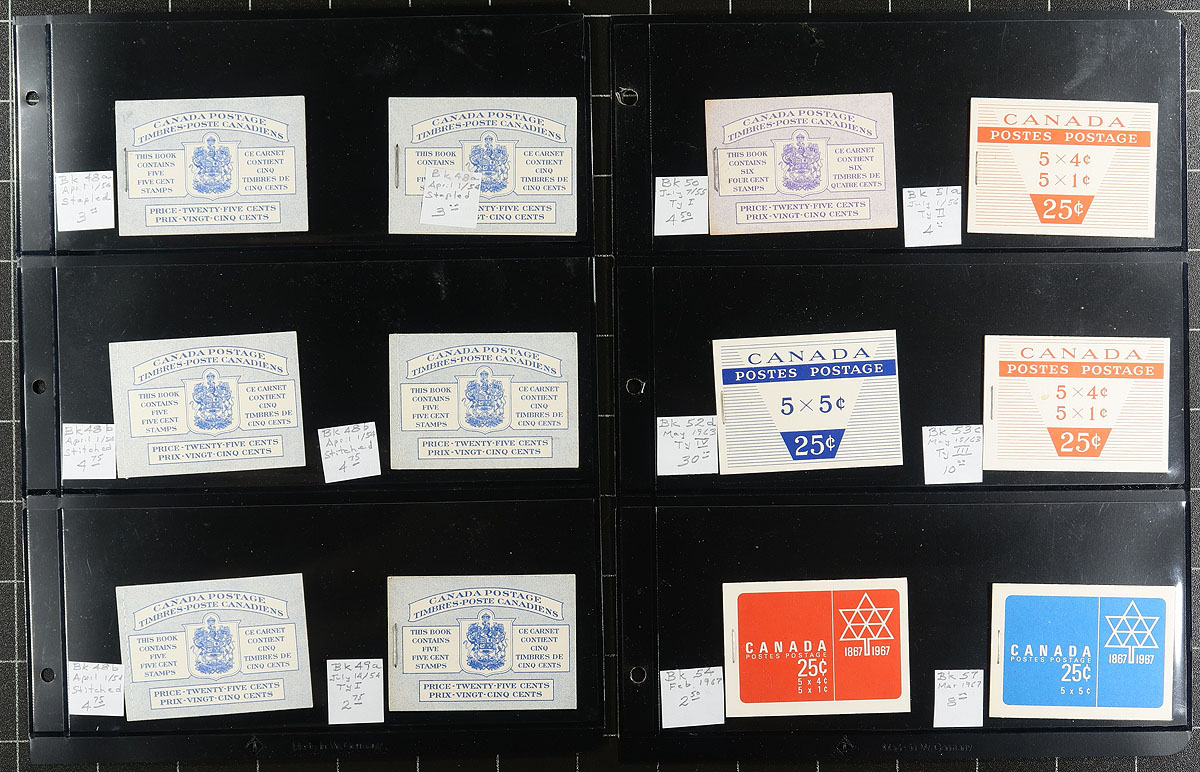Collection of 61 booklets, from the 1937-1971 period, all neatly arranged and identified on stockpages. A nice mix of booklets here, including English, French and Billingual, with variety in rate pages as well. A couple duplicates noted, but overall a very diverse offering. Catalogued as basic booklets by the owner, with no premiums for VF / clean booklets placed on the earlier material. Owner's 2023 Unitrade =