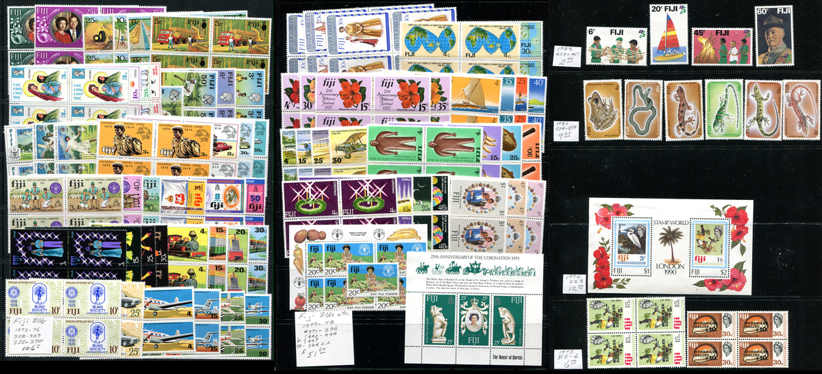 VF mint Never Hinged assembly of blocks (plus some singles) from the 1972-1981 period, all neatly arranged on stockpages. A total of 305 stamps, including some nice topical interest. 2025 Scott US$188.05 =